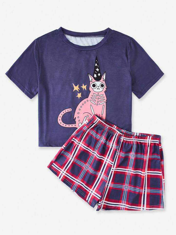 Remiandoliver Dessin Animé T-shirt & À Carreaux Short Ensemble De Pyjama