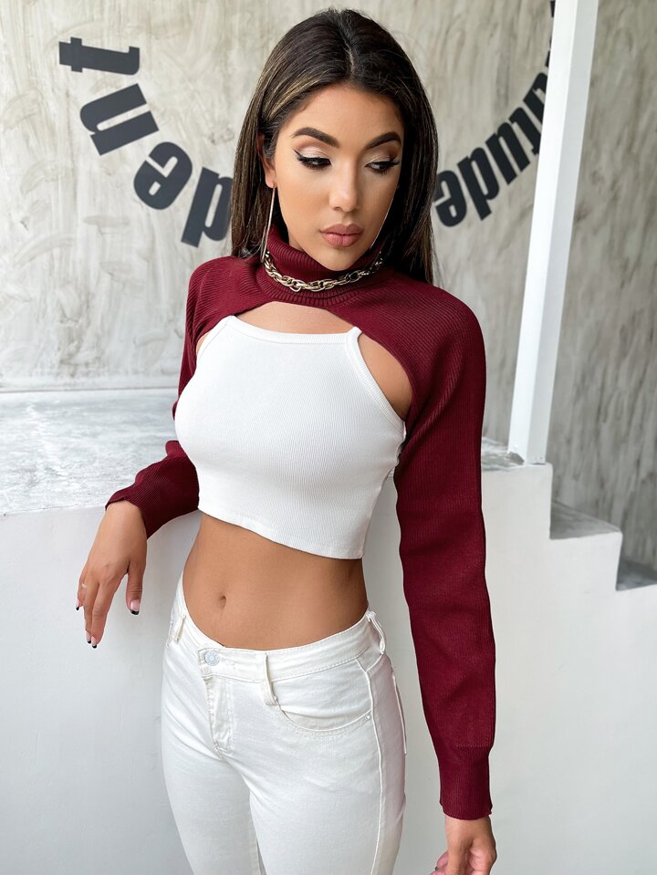Pull très court côtelé (sans camisole)