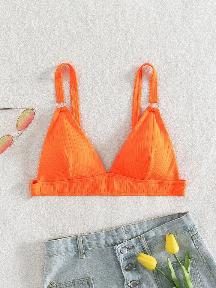 Haut de bikini côtelé à lien anneau