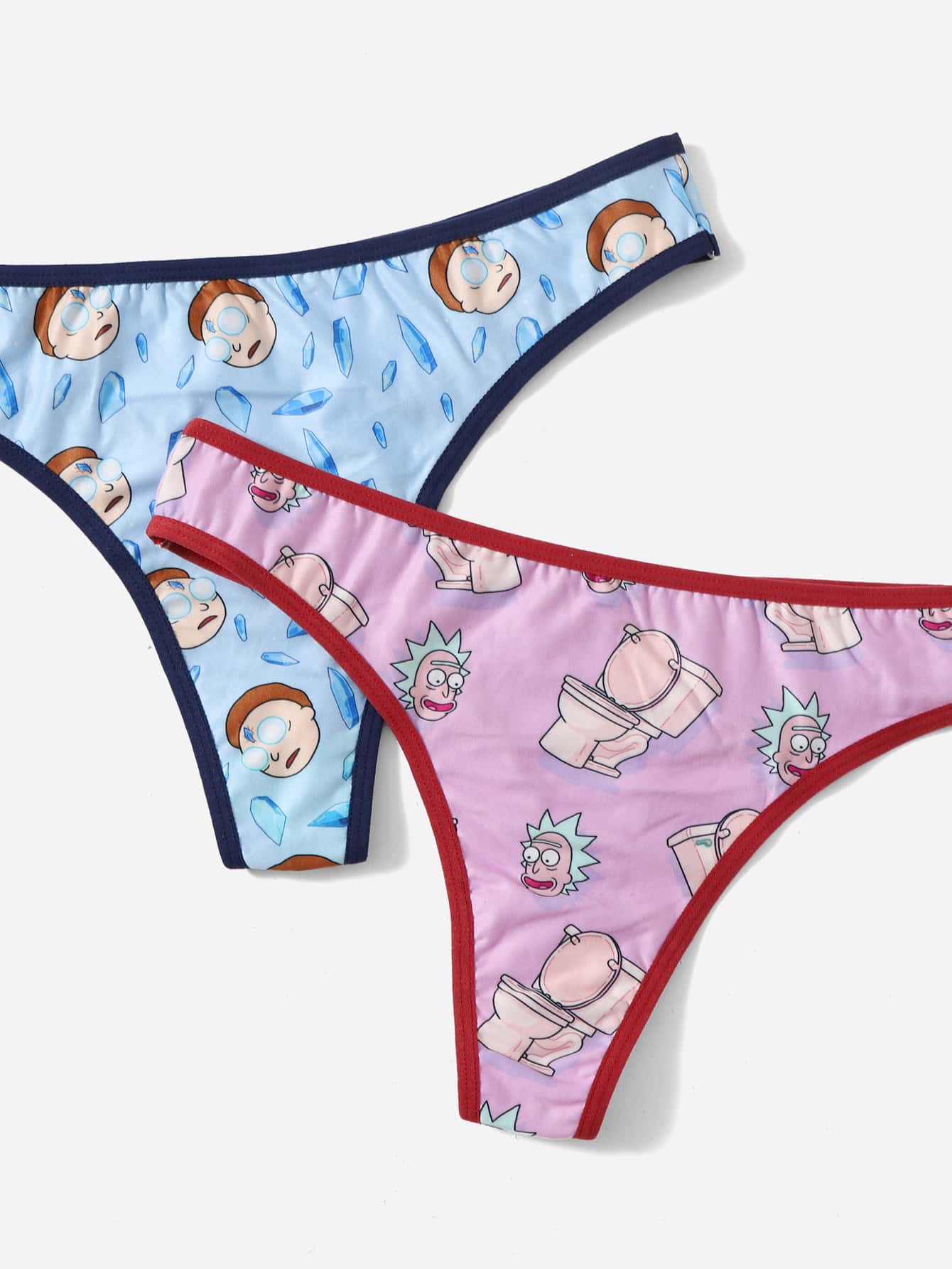 Rick and Morty | ROMWE 3 pièces Set de culottes dessin animé à liseré contrastant