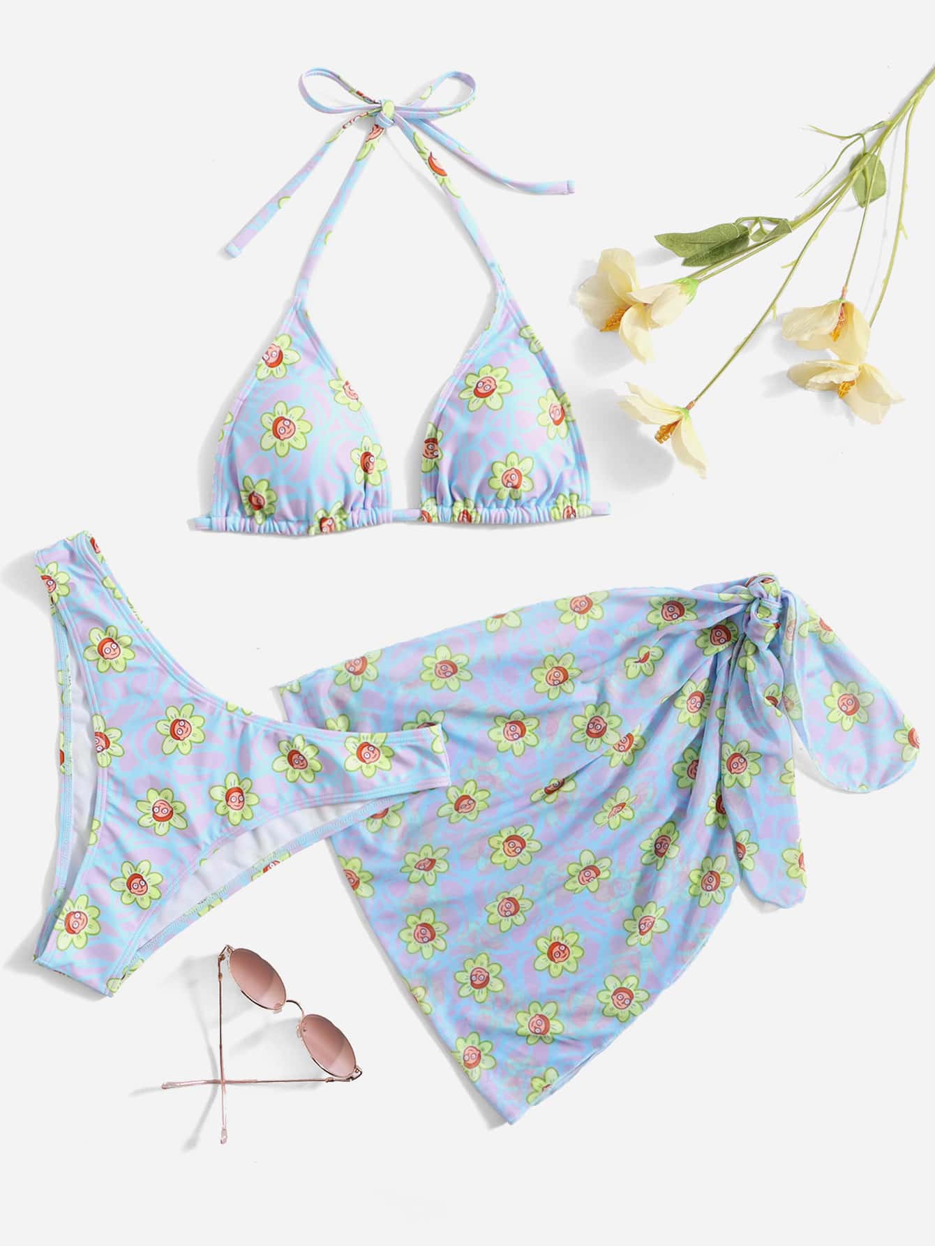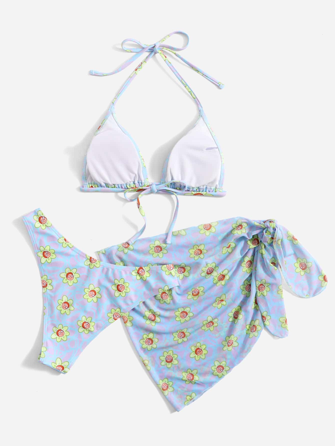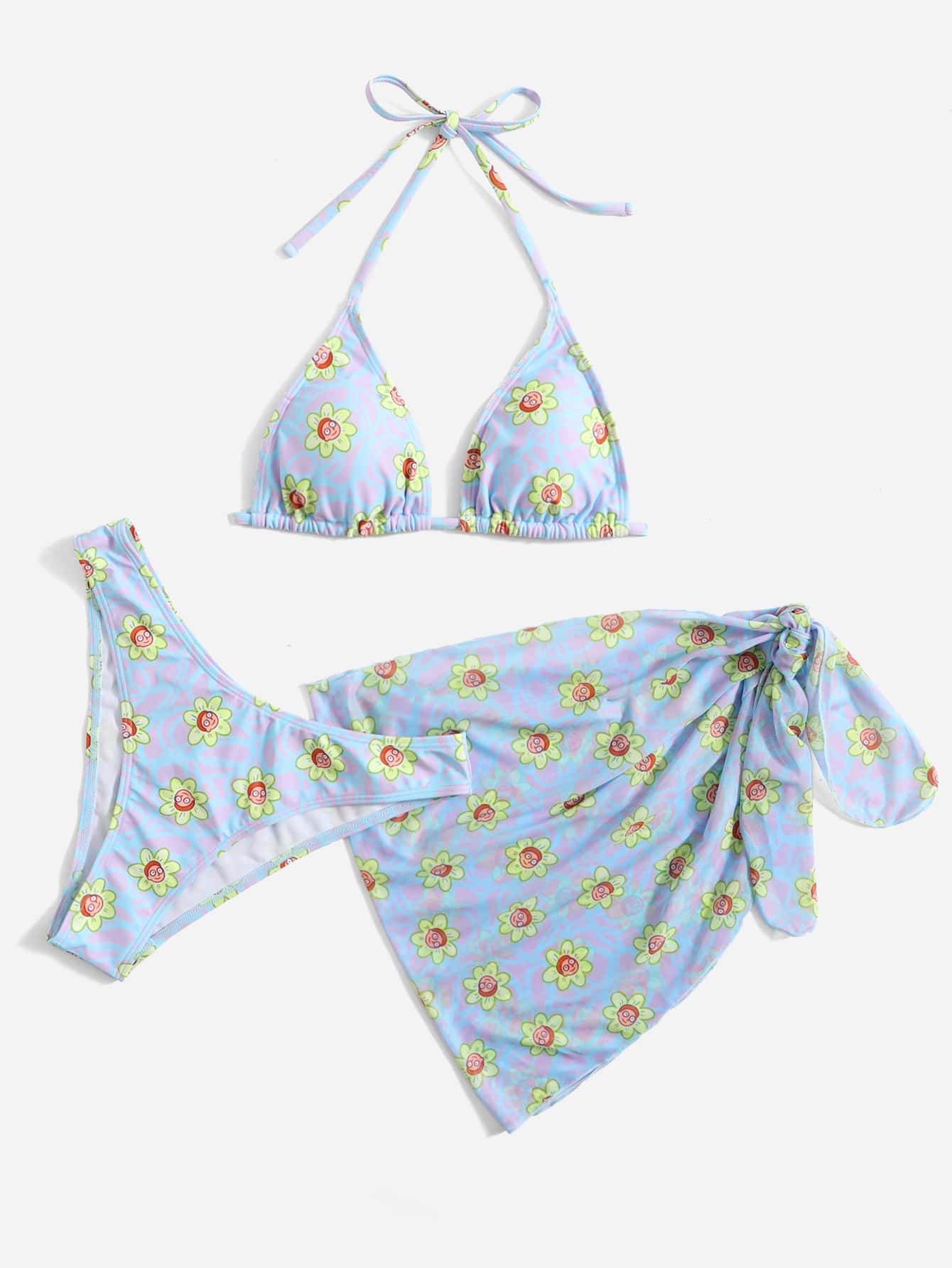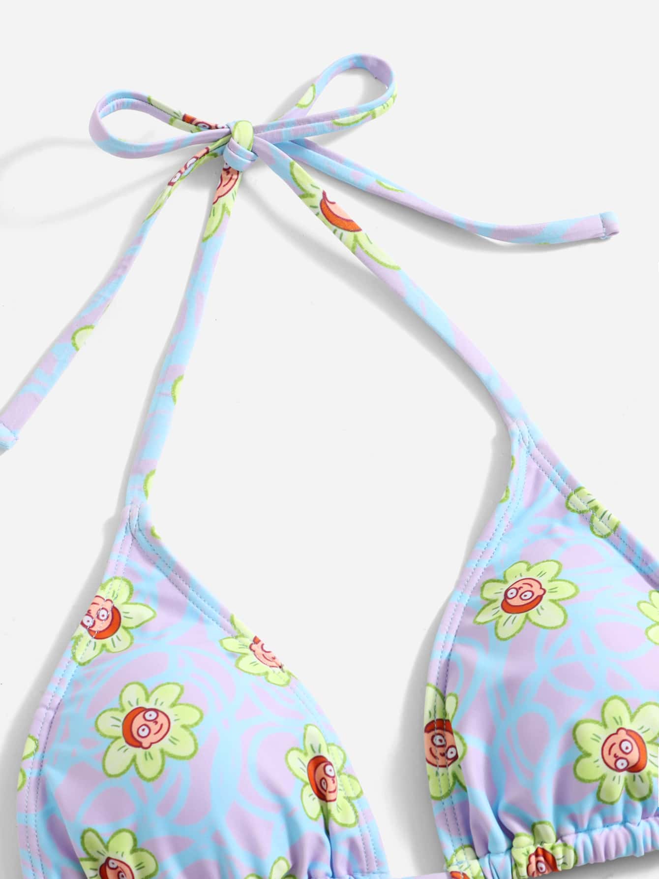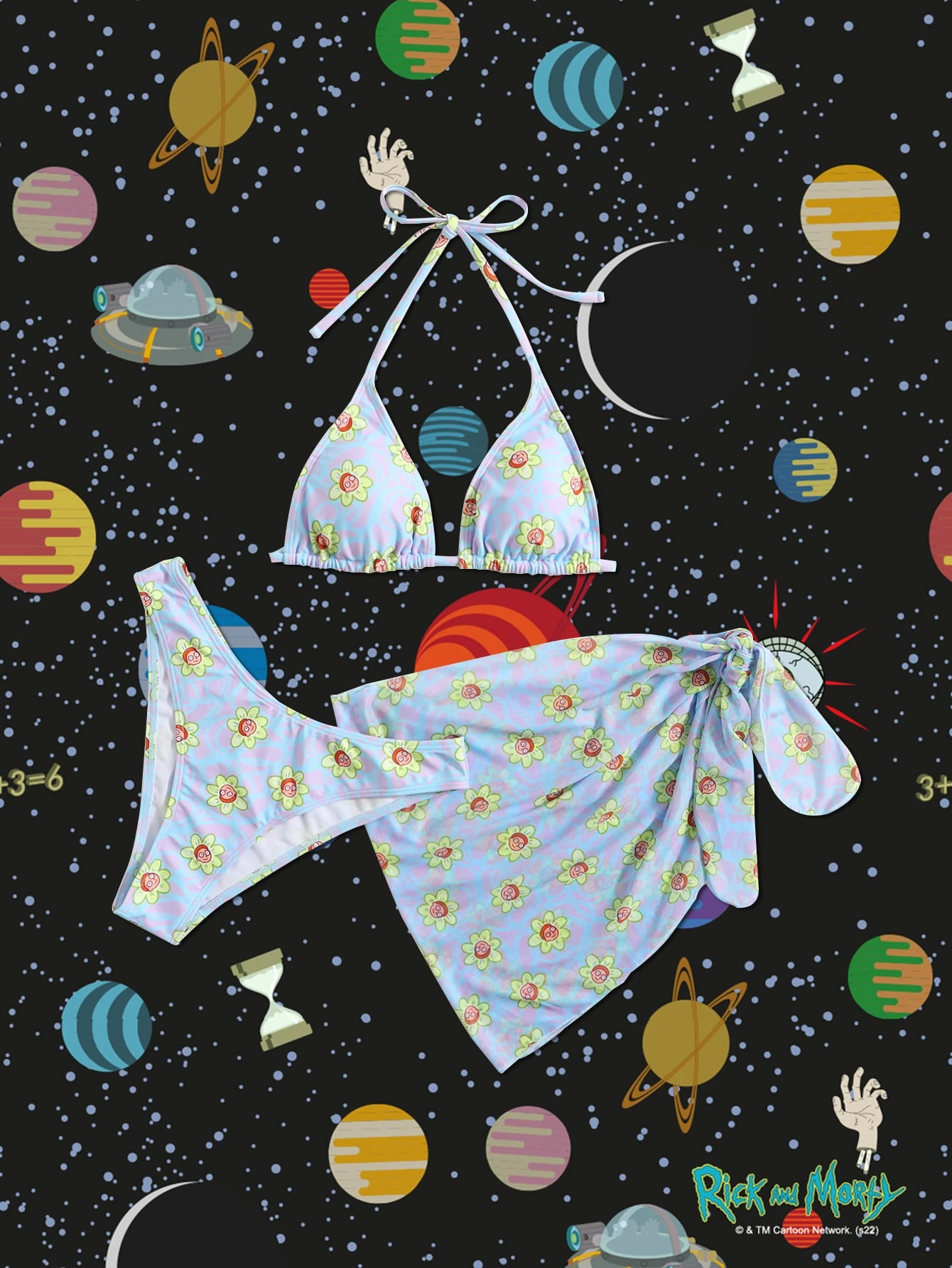 Rick and Morty | ROMWE Ensemble de 3 Bikini ras-du-cou imprimé dessin animé avec jupe de plage
