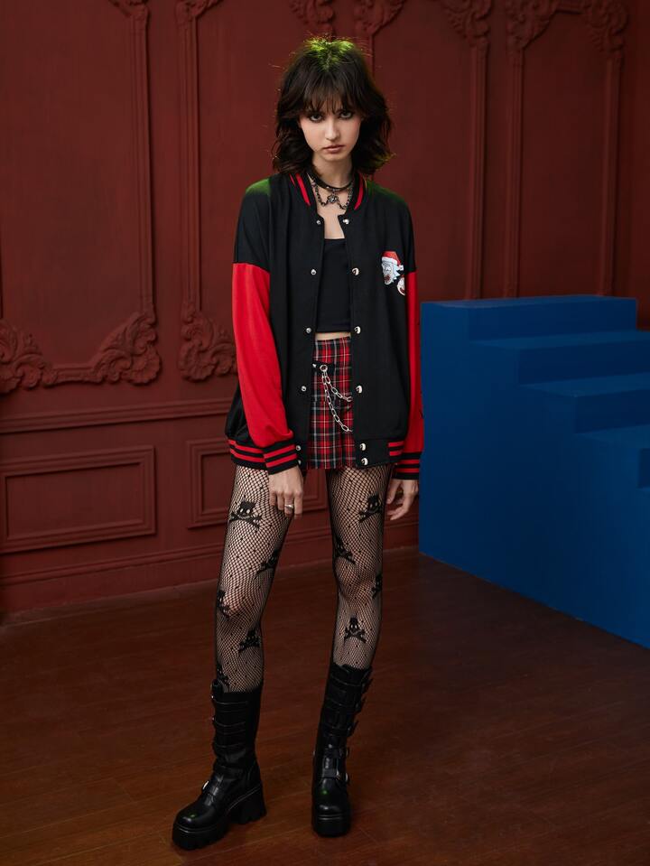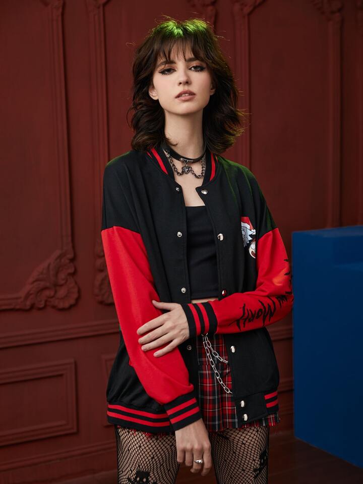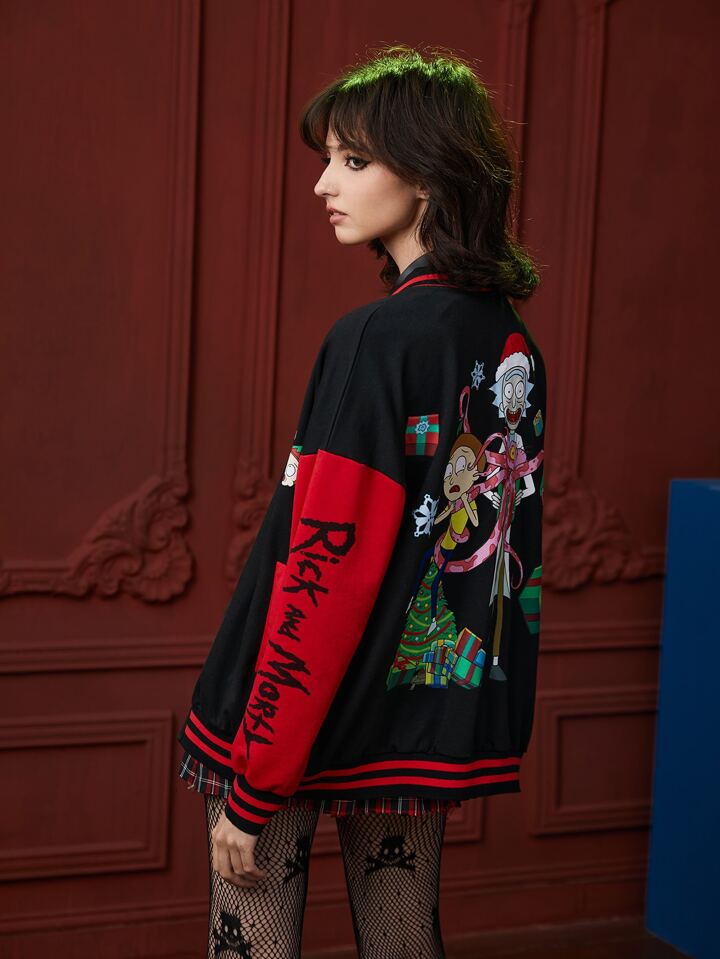 Rick and Morty | ROMWE Veste universitaire Noël à motif dessin animé et lettre à ourlet à rayures