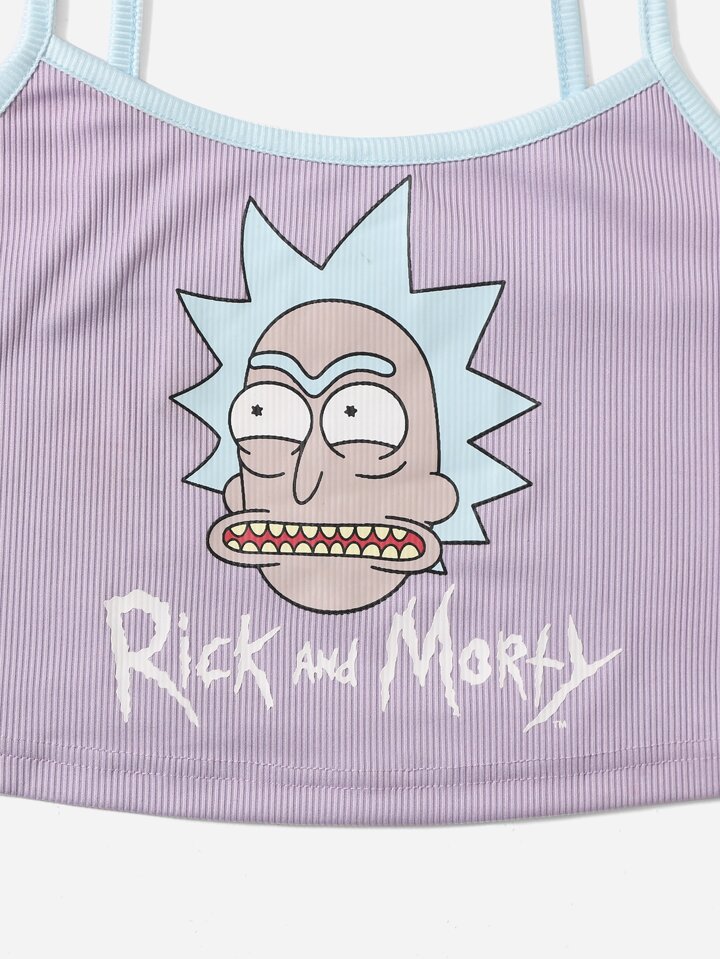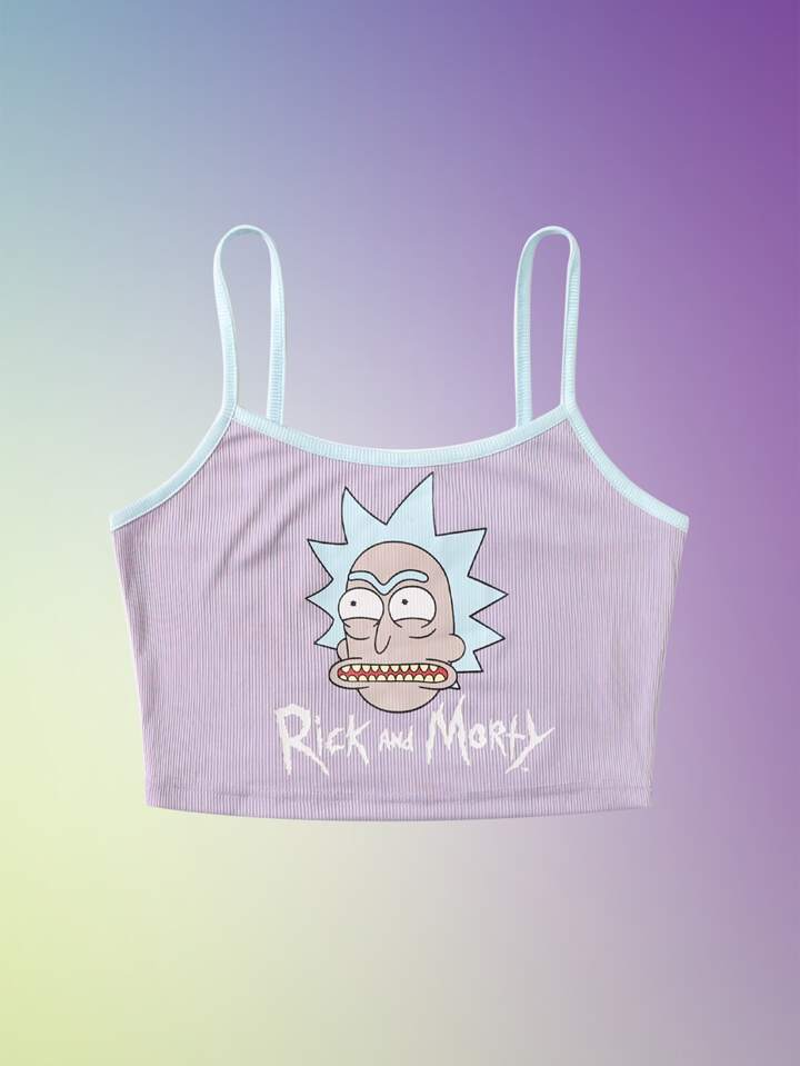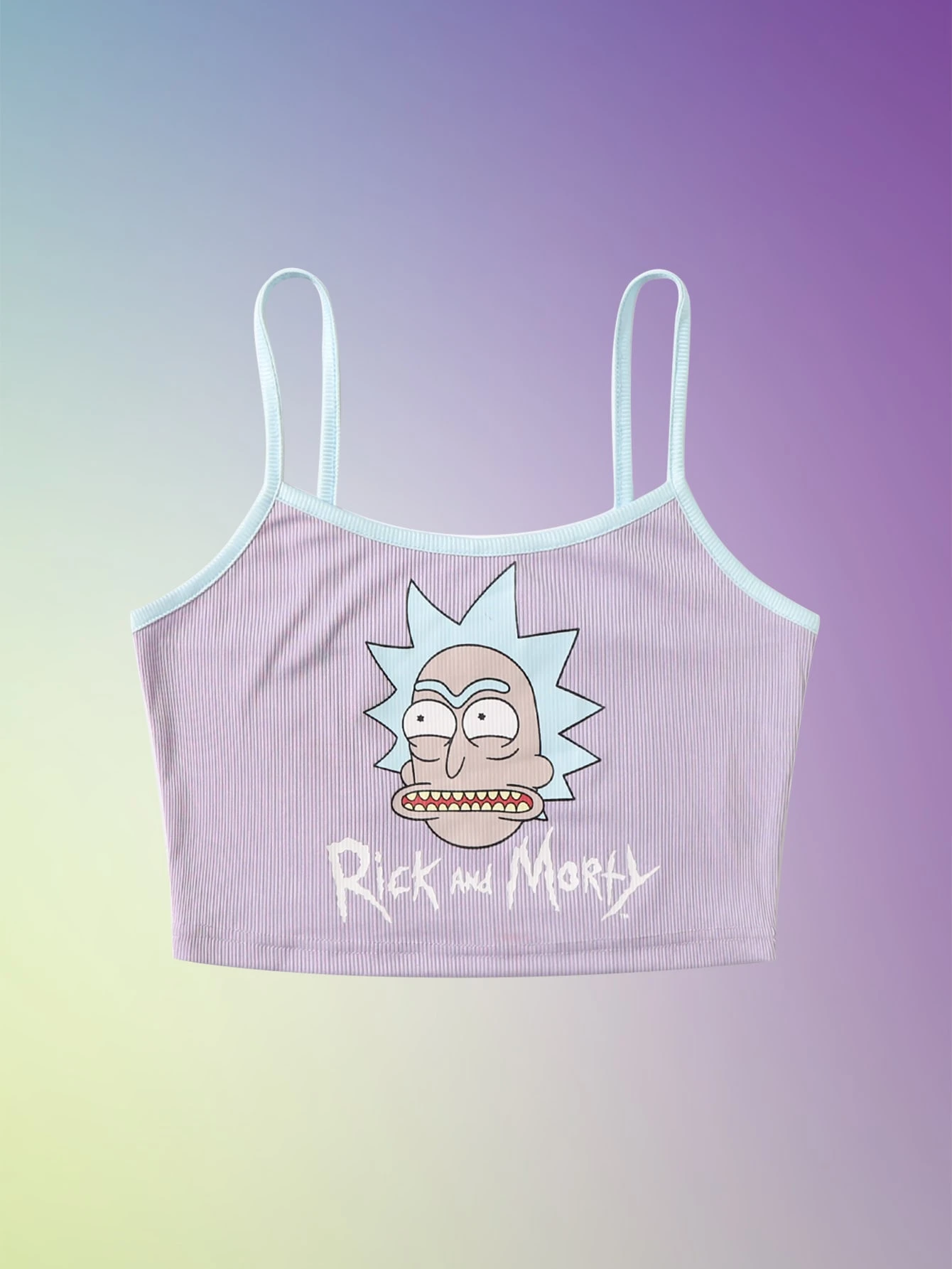 Rick and Morty | ROMWE Top à fines brides court à motif lettre dessin animé côtelé