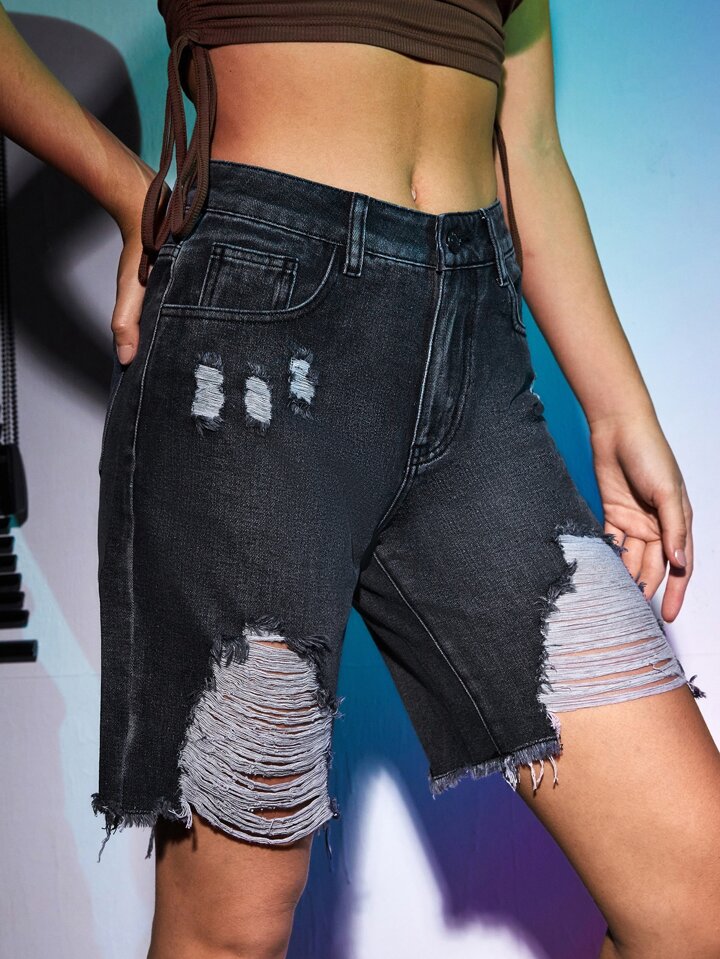 Bermuda en jean déchiré