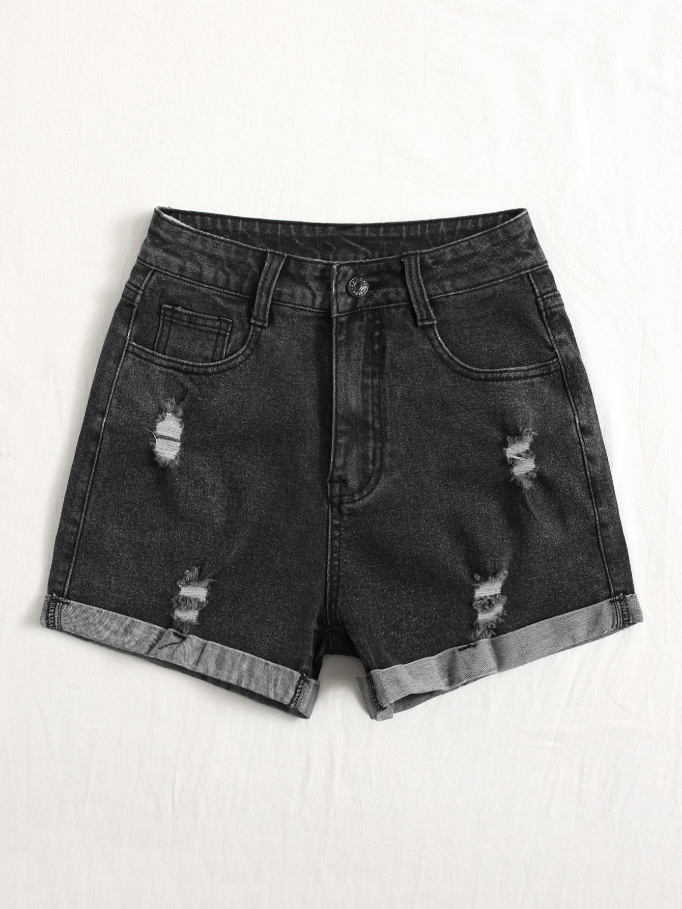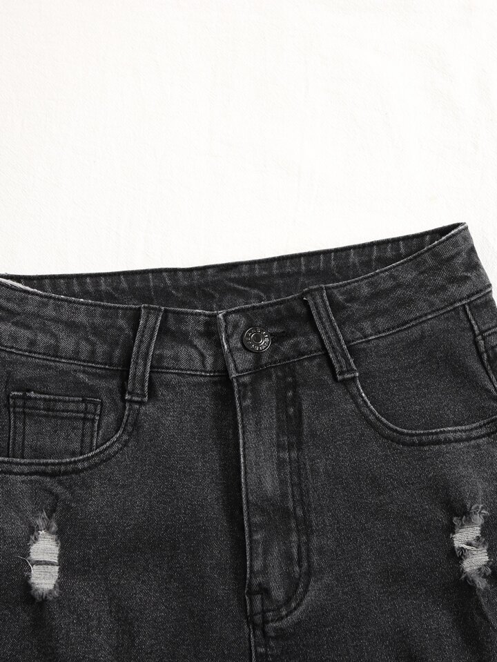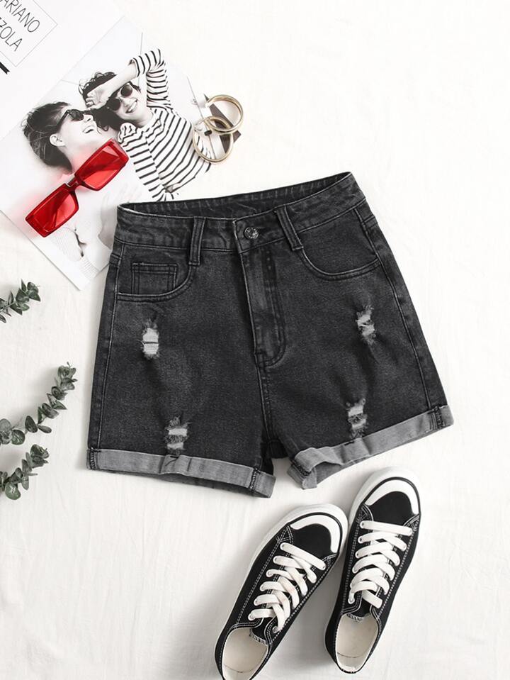 Short en jean déchiré à ourlet roulé