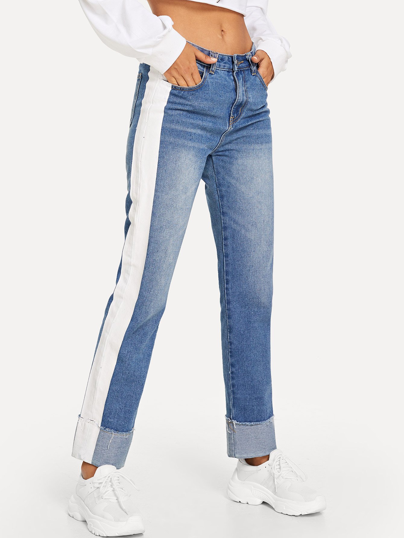 Jean délavé relevé