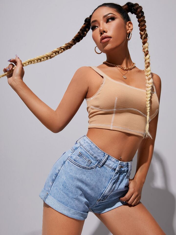 Short en jean ourlet roulé délavé