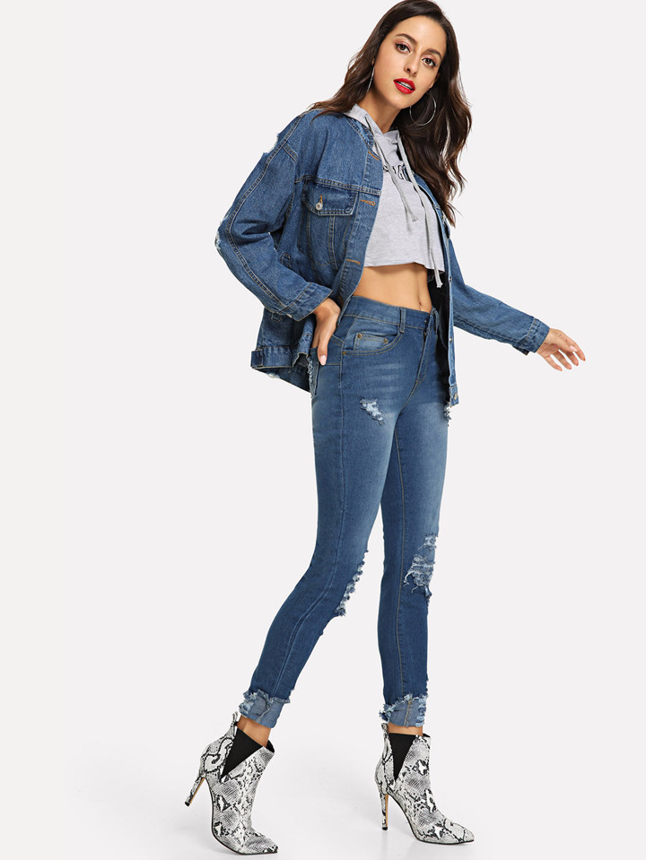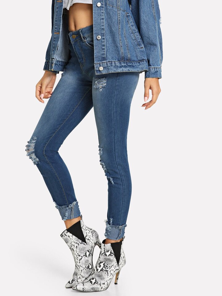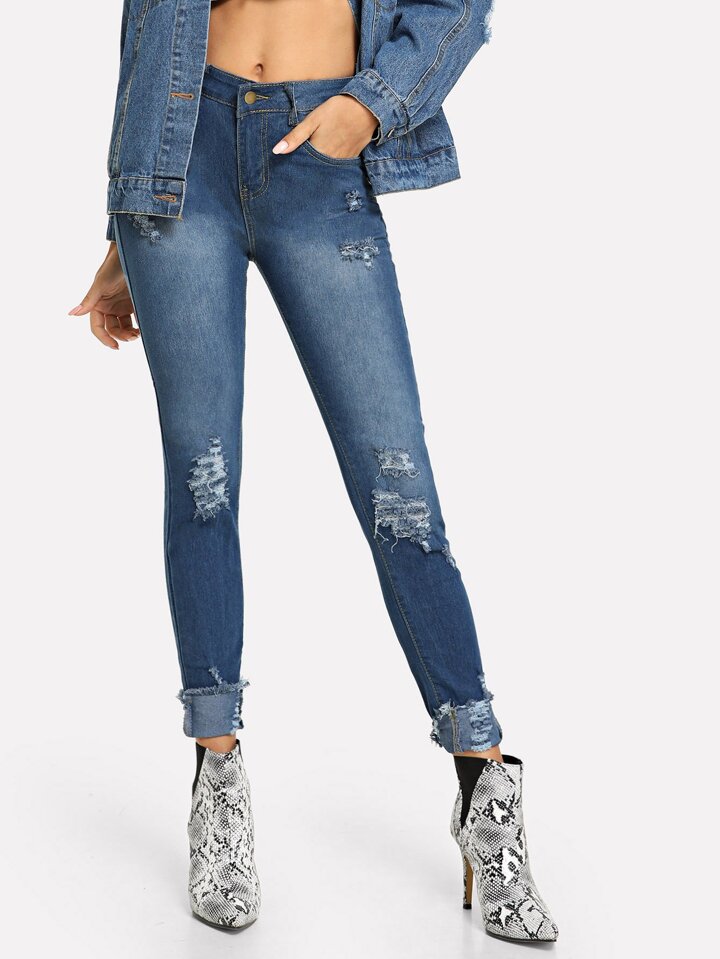 Jeans déchiré à ourlet relevé