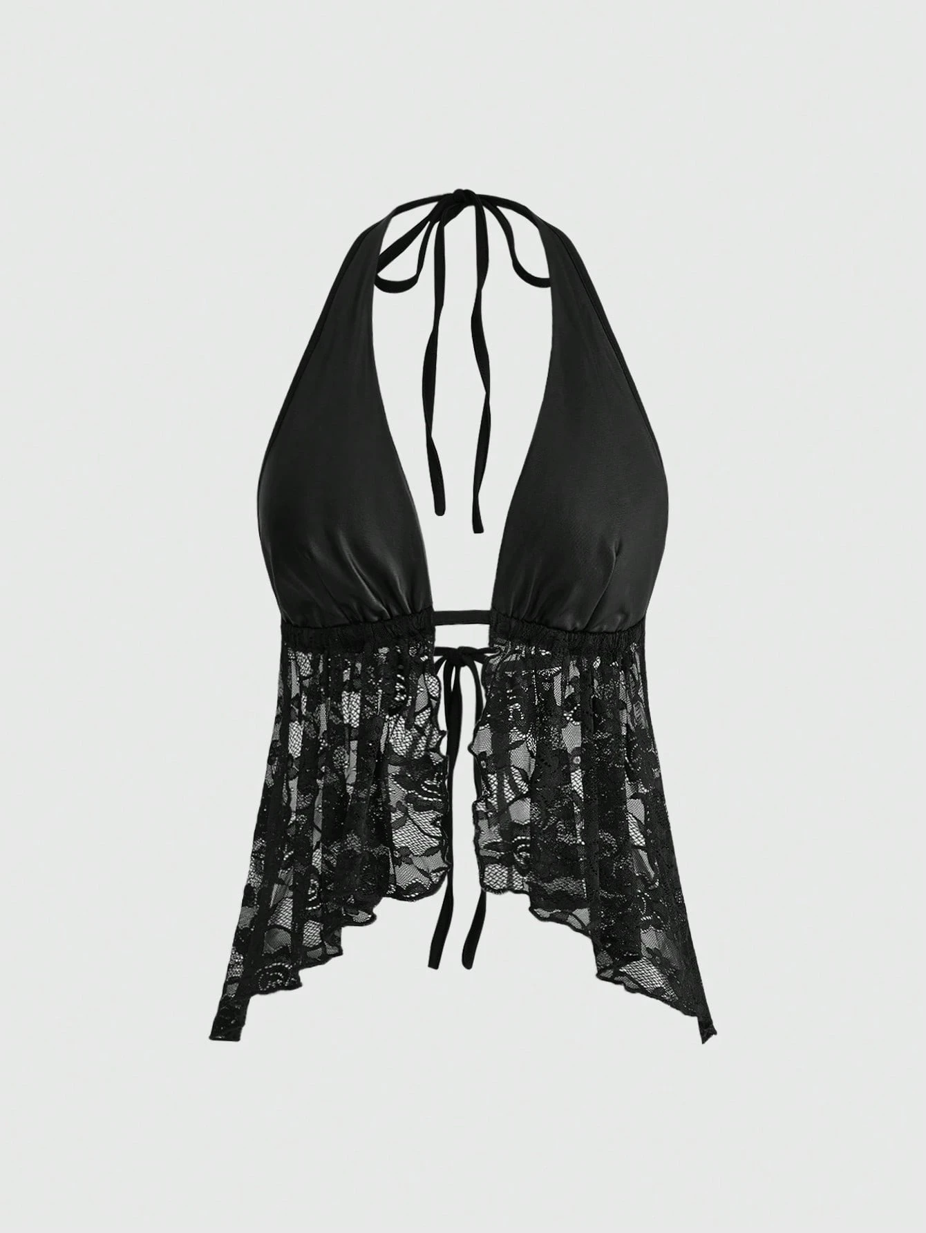 Débardeur femme romantique gothique sexy en patchwork de dentelle avec encolure ras-du-cou et dos nu