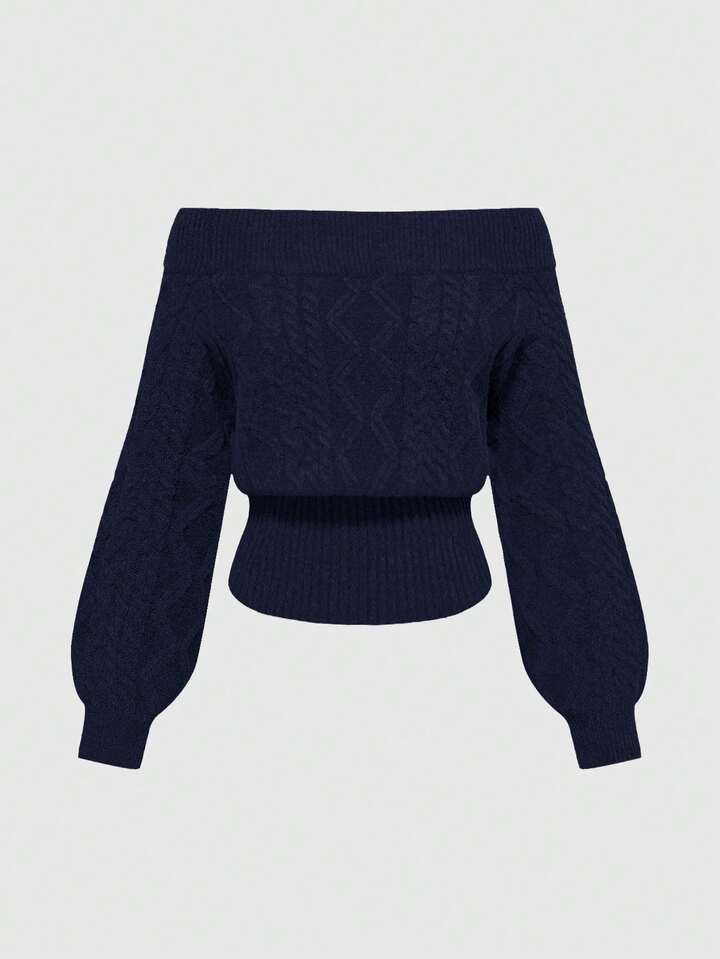 pull à manches lanternes avec épaules dénudées, motif floral gris épais en tricot à motif en Z, romantique