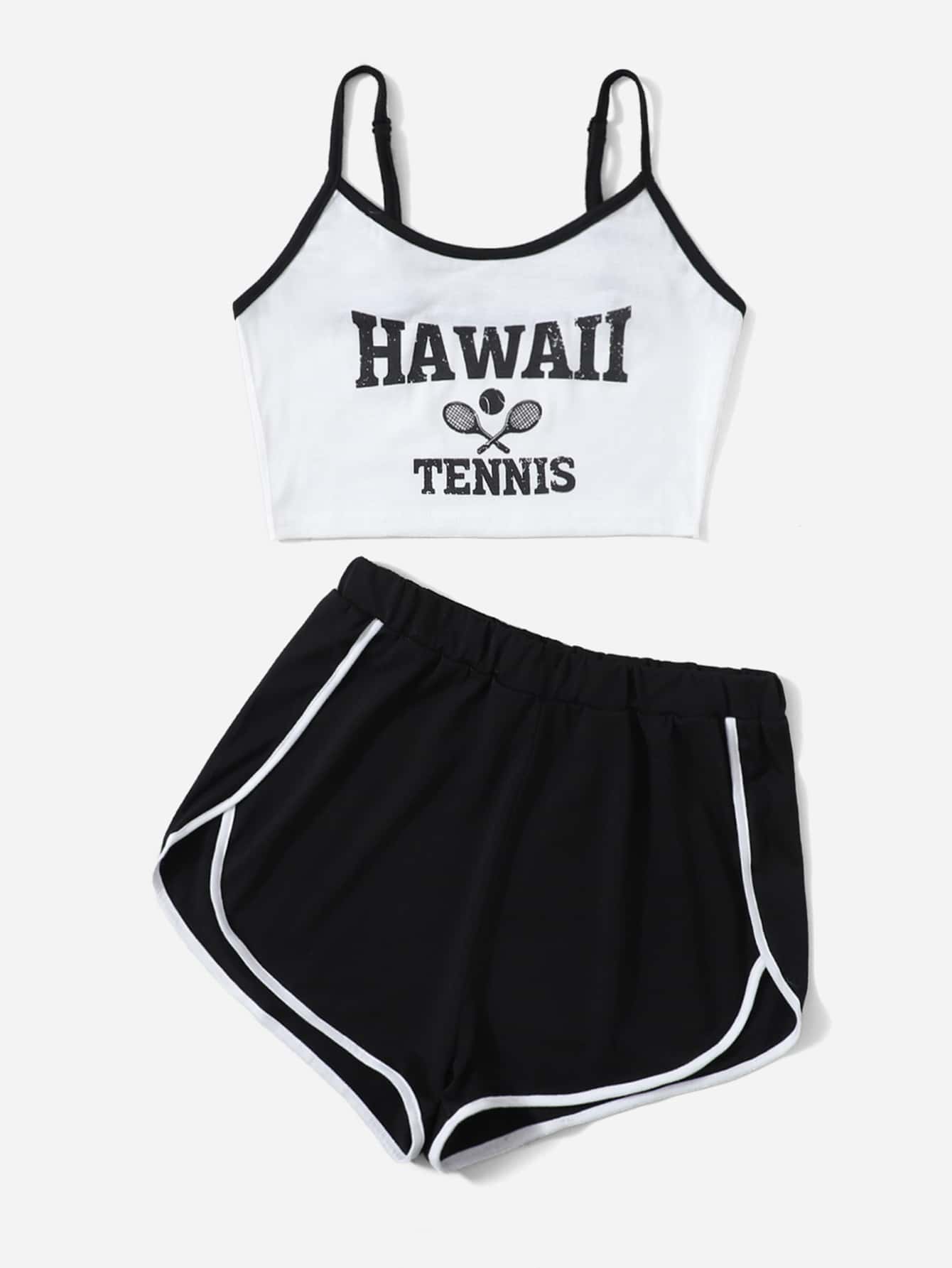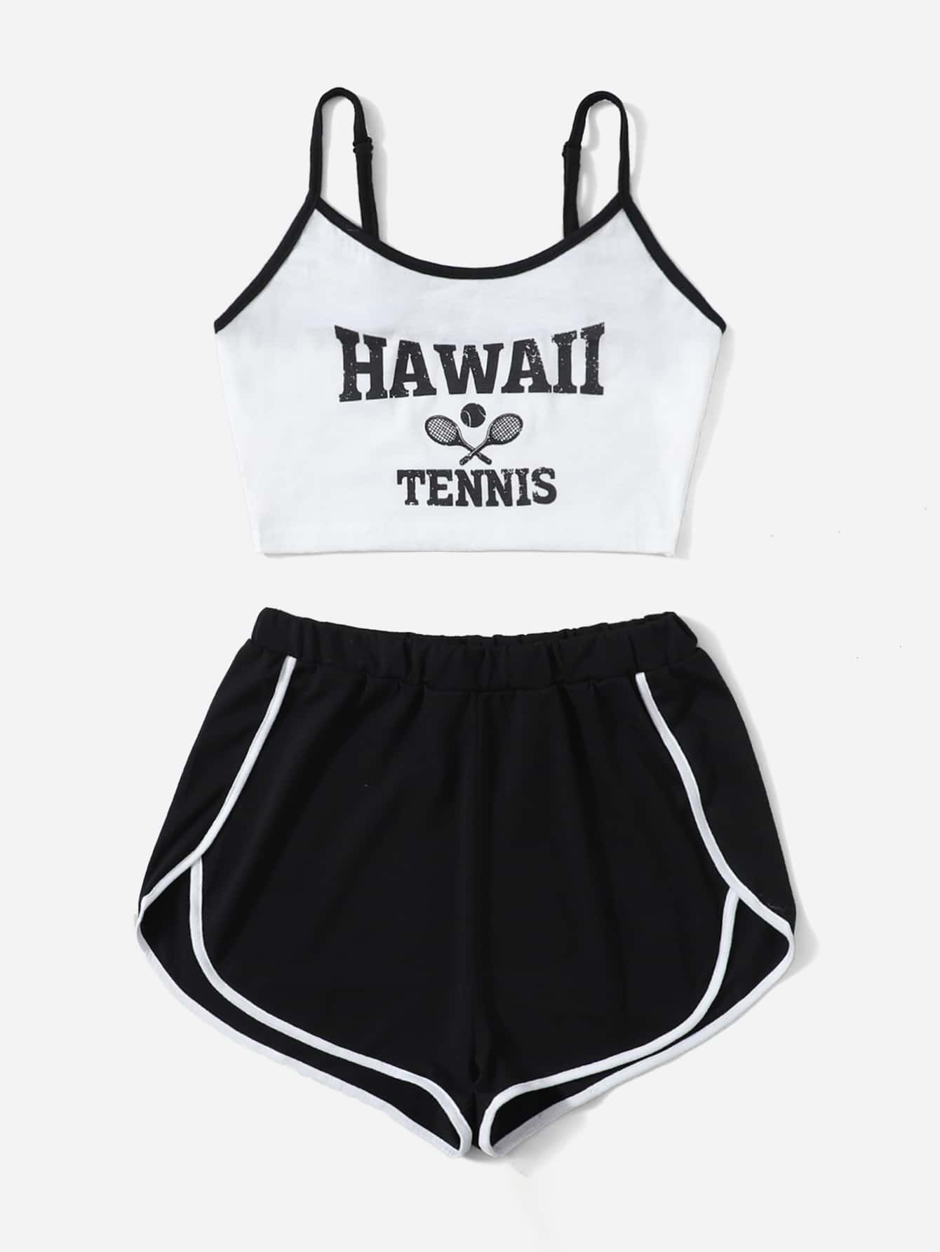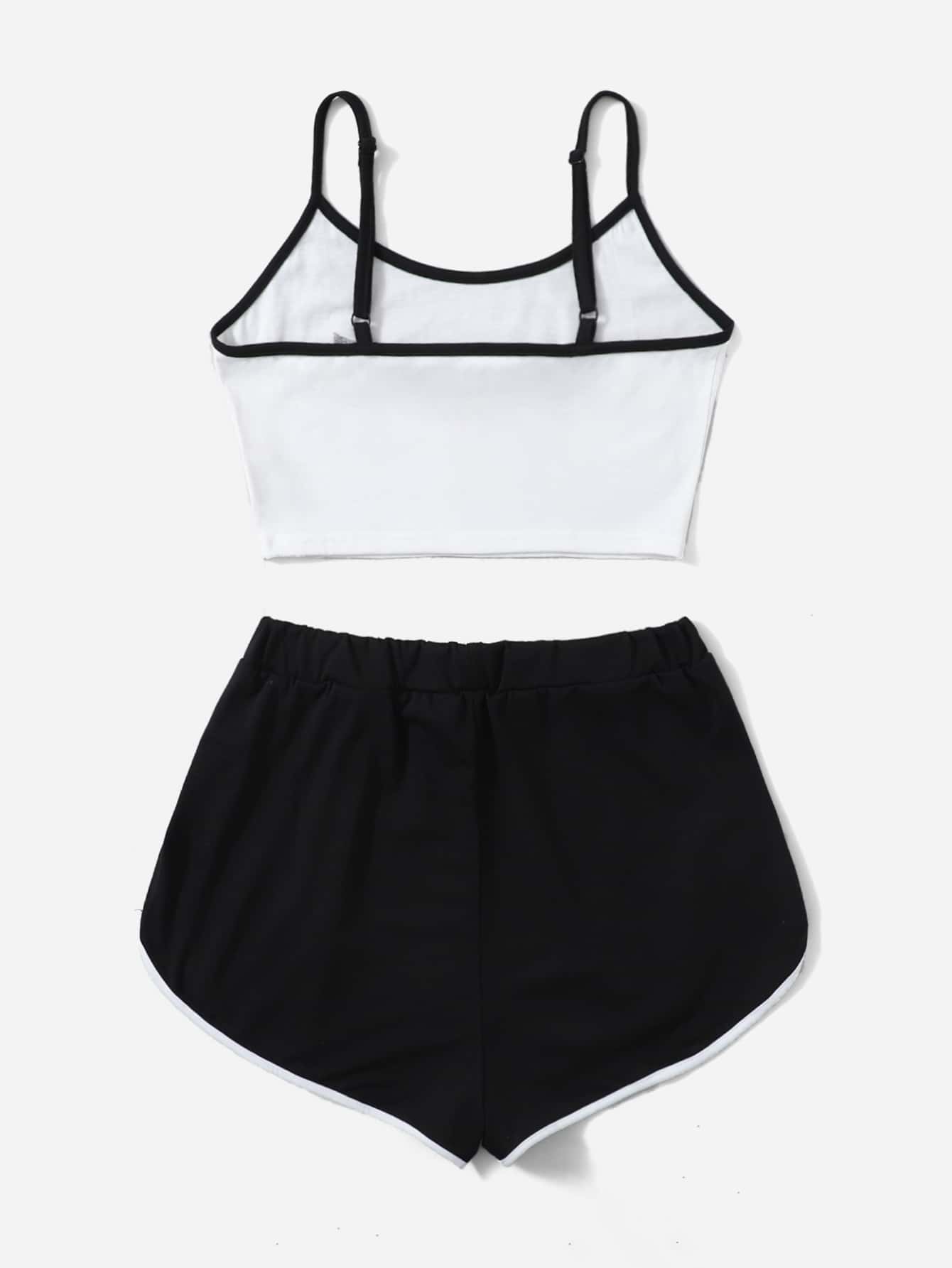 Romwe X Gabiciamp Ensemble de pyjama à lettres à liseré contrastant