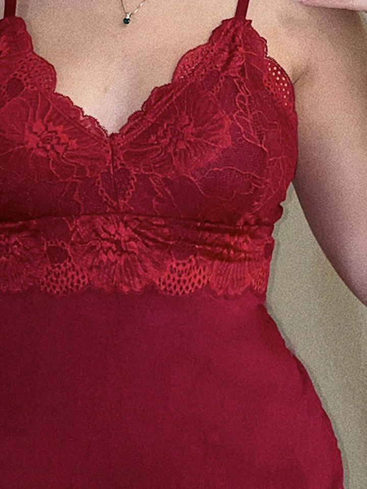 Romwe X Gabiciamp Ensemble de pyjama short unicolore en dentelle