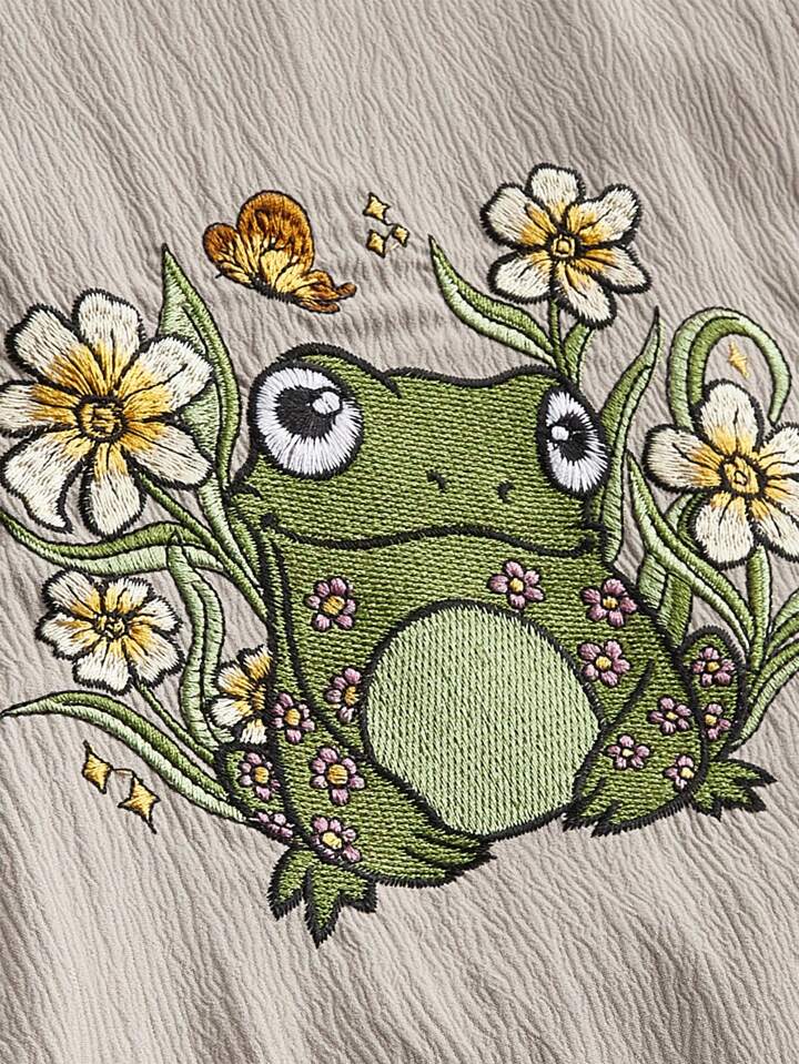 Rosie Robe salopette à ourlet asymétrique avec broderie de fleur et de grenouille mignonne de campagne