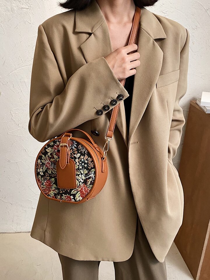 Cartable rond à imprimé fleur