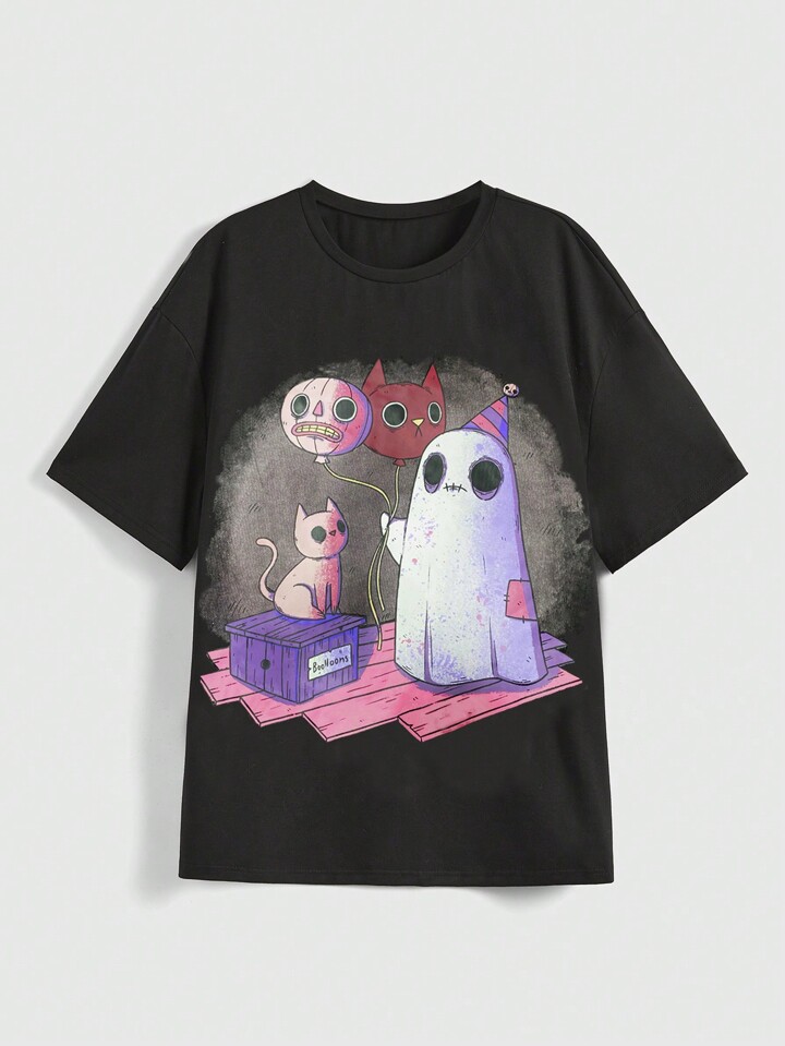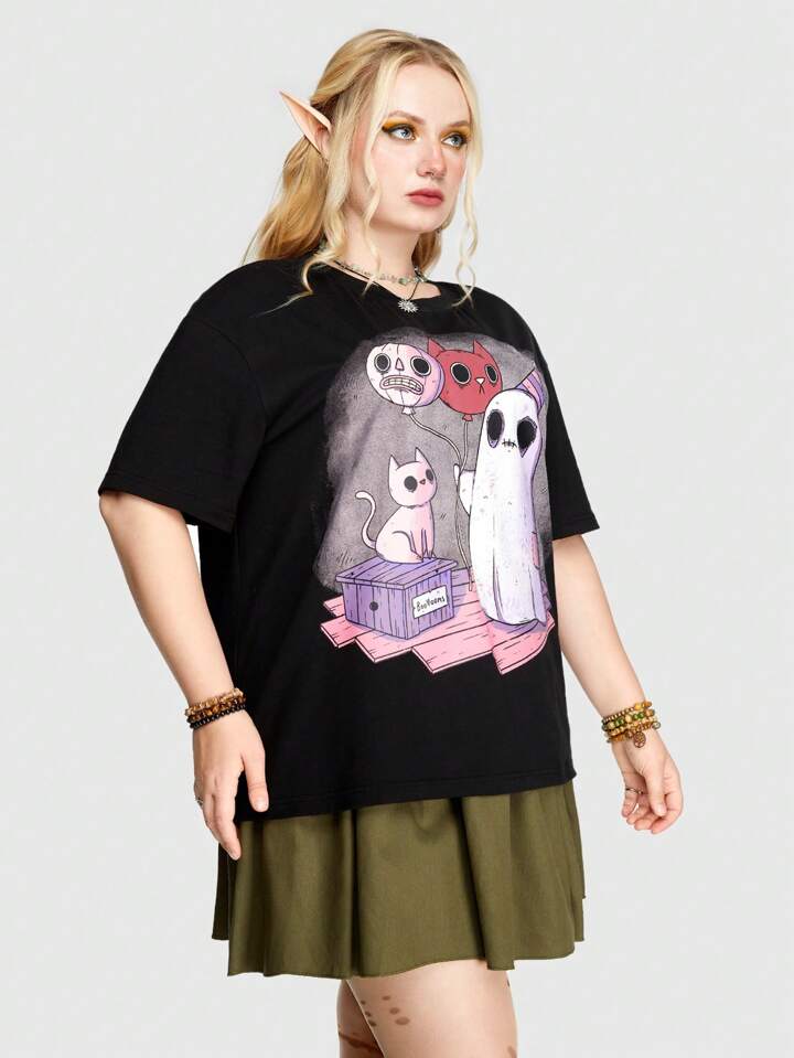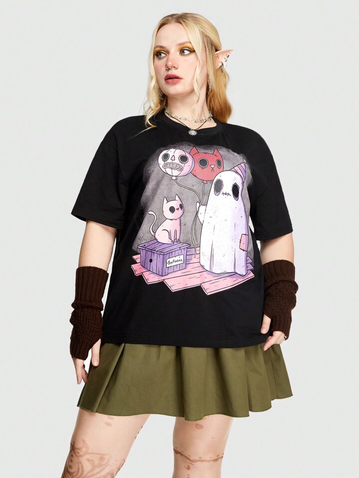 SICKYLL Tee-shirt à manches tombantes et imprimé dessin animé, grande taille, pour école