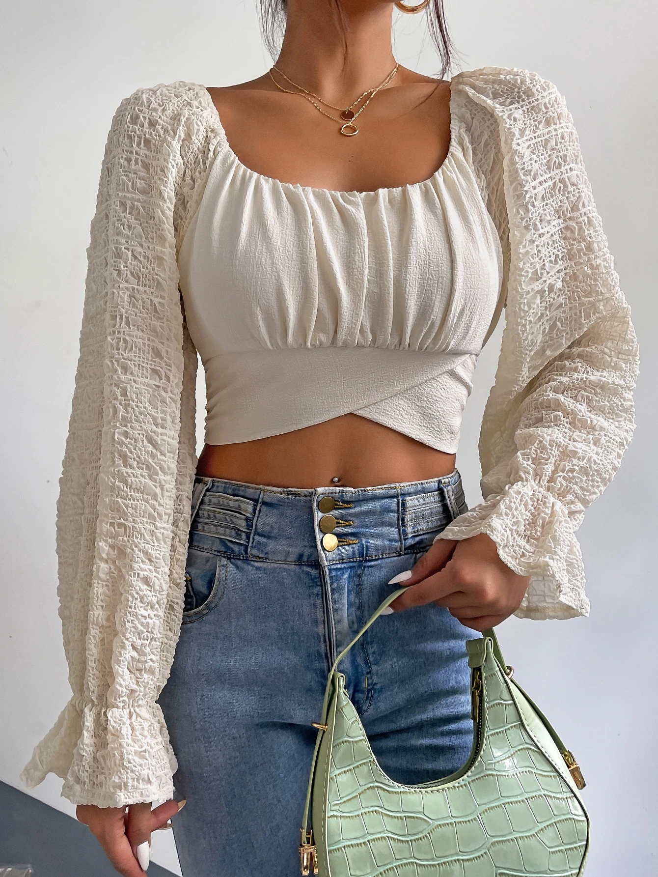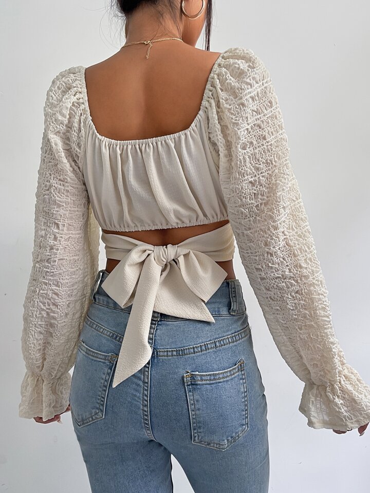 Blouse courte manches évasées à nœud