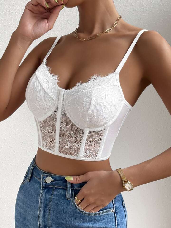 Débardeur en dentelle transparente pour les vêtements de fête des vacances
