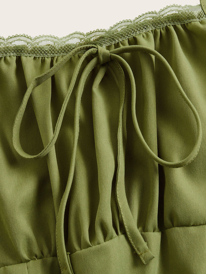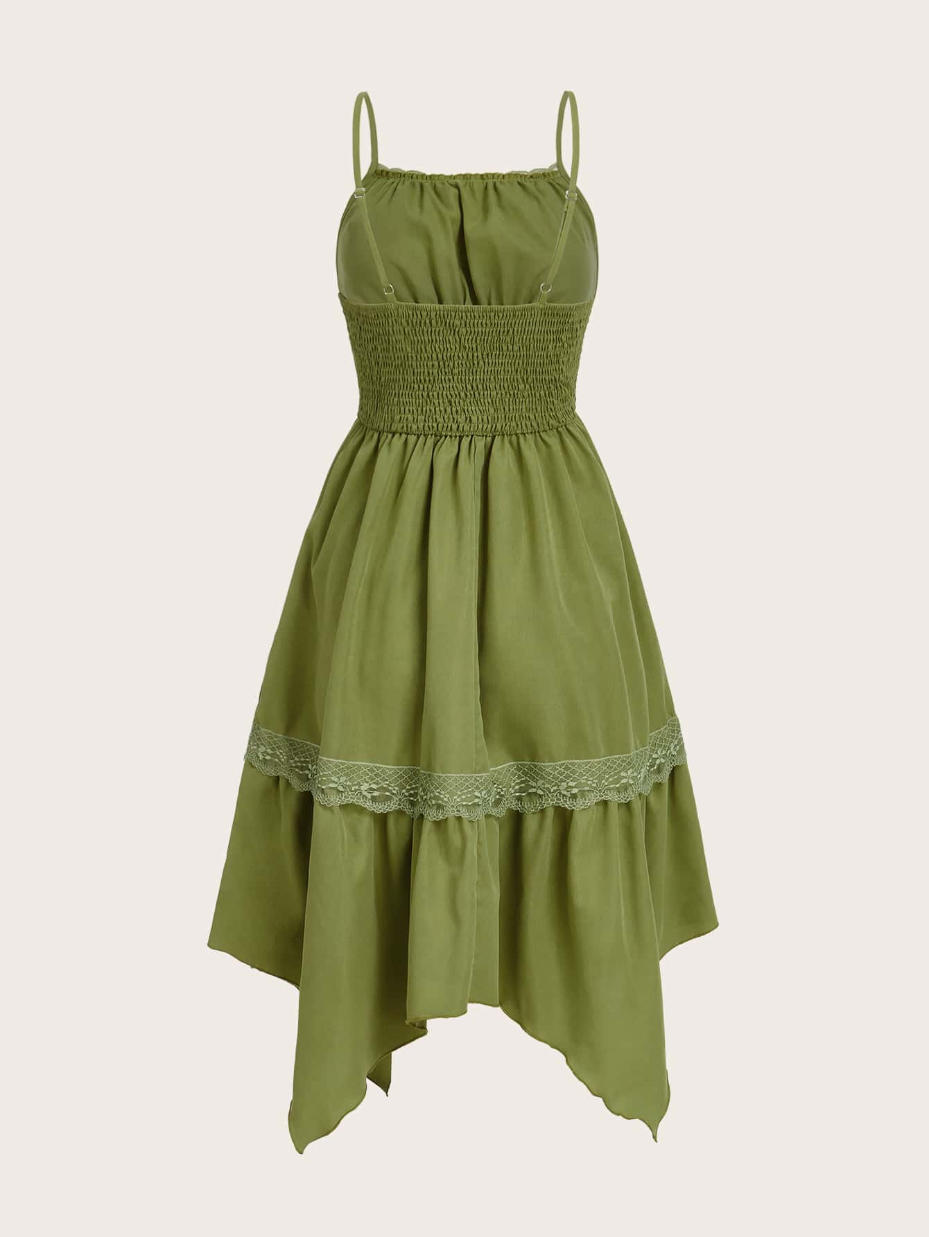 Robe À Fines Brides Froncé En Dentelle Ourlet Hanky