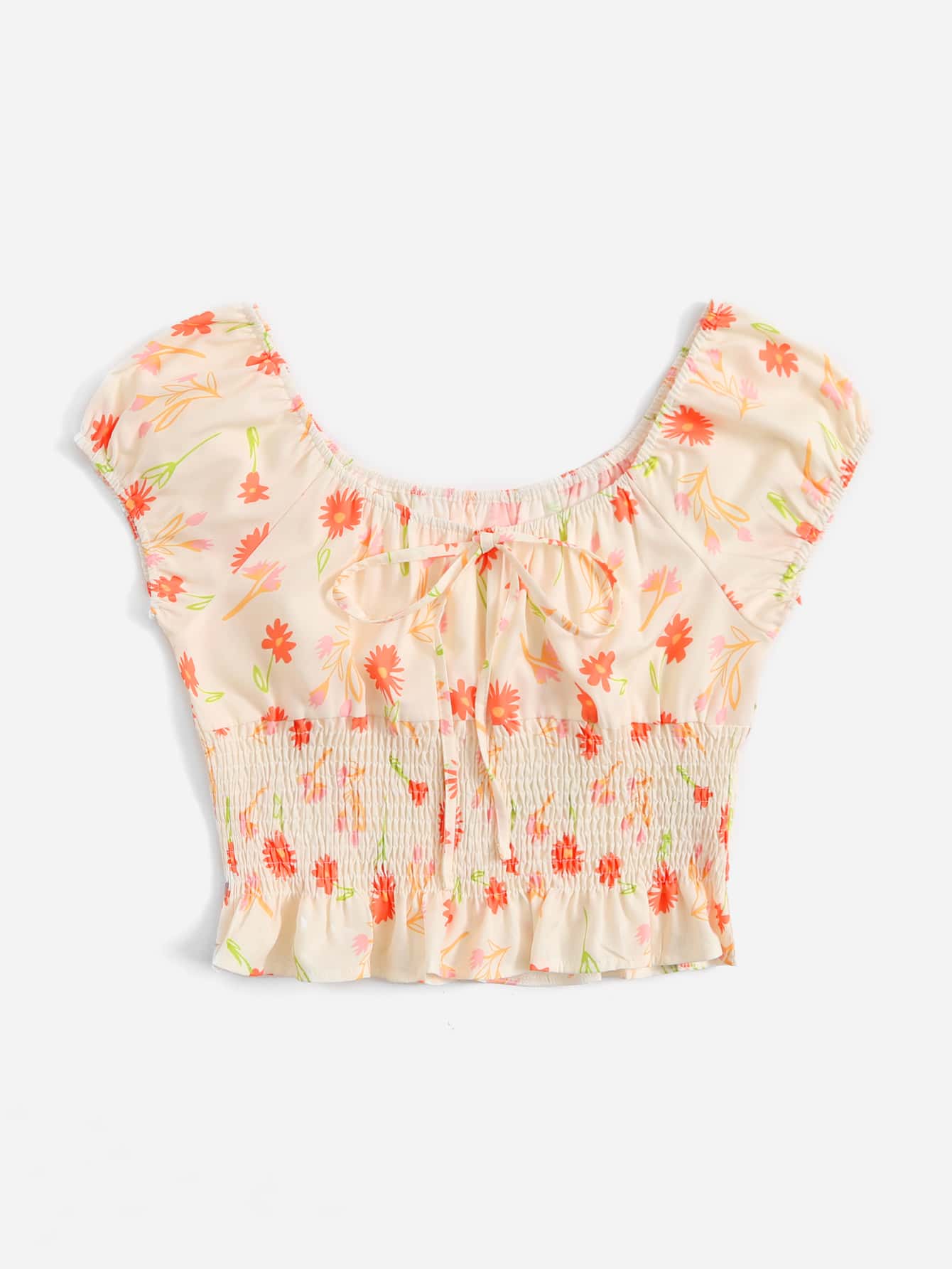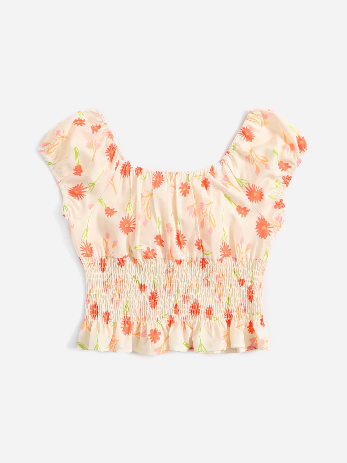 Blouse froncé fleuri à volants