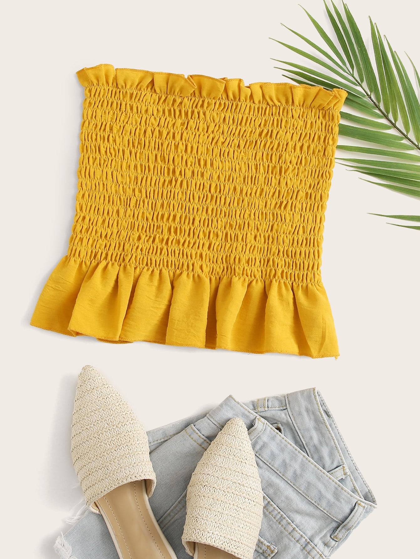 Top Bandeau Froncé À Volants En Mousseline De Soie