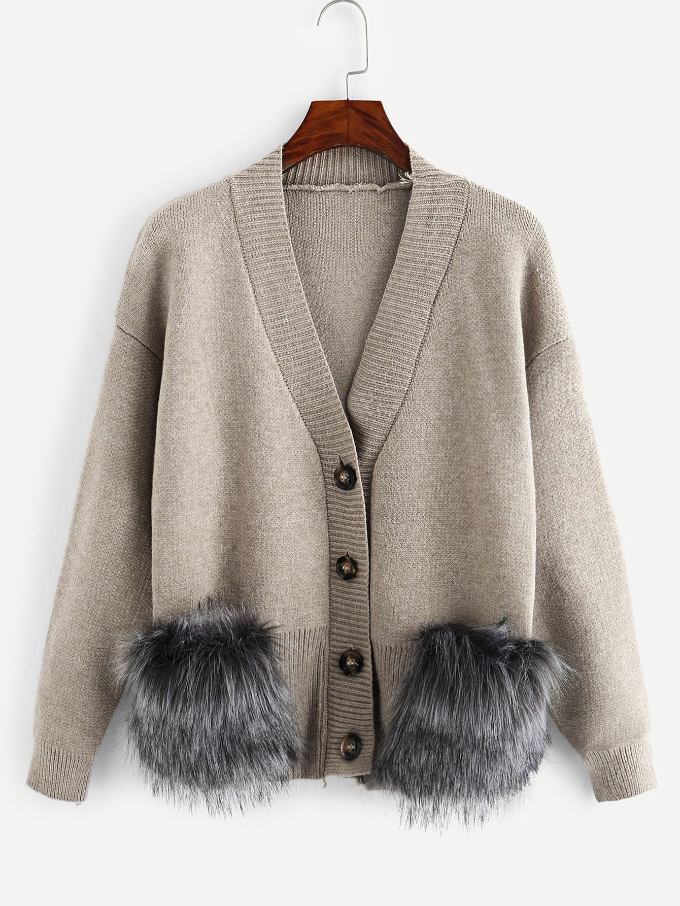 Pull à panneau en fausse fourrure à un boutonnage et poche