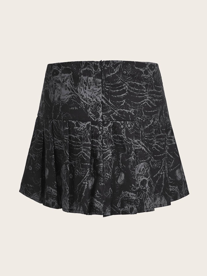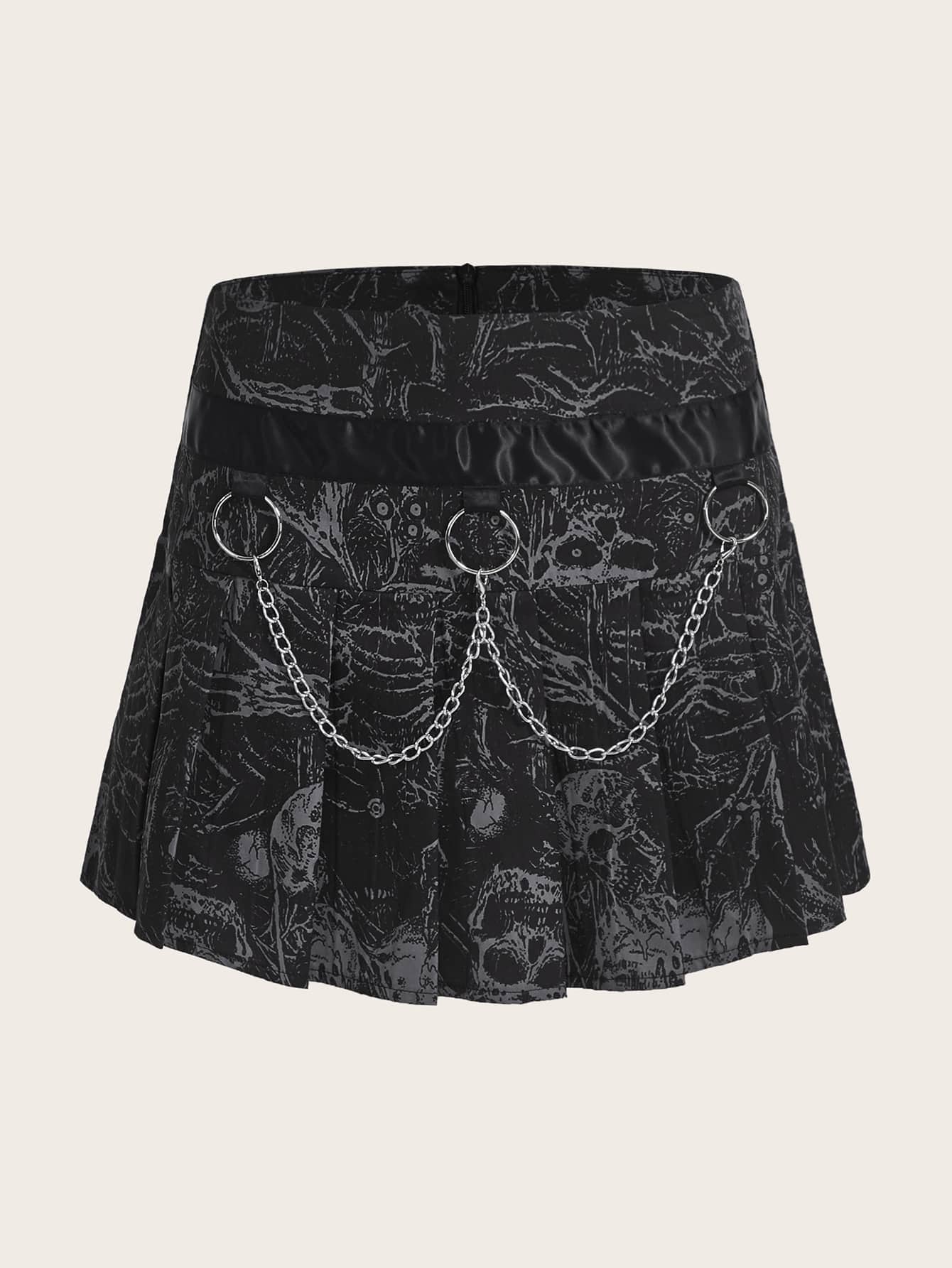 Jupe à imprimé tête de mort à chaîne plissé