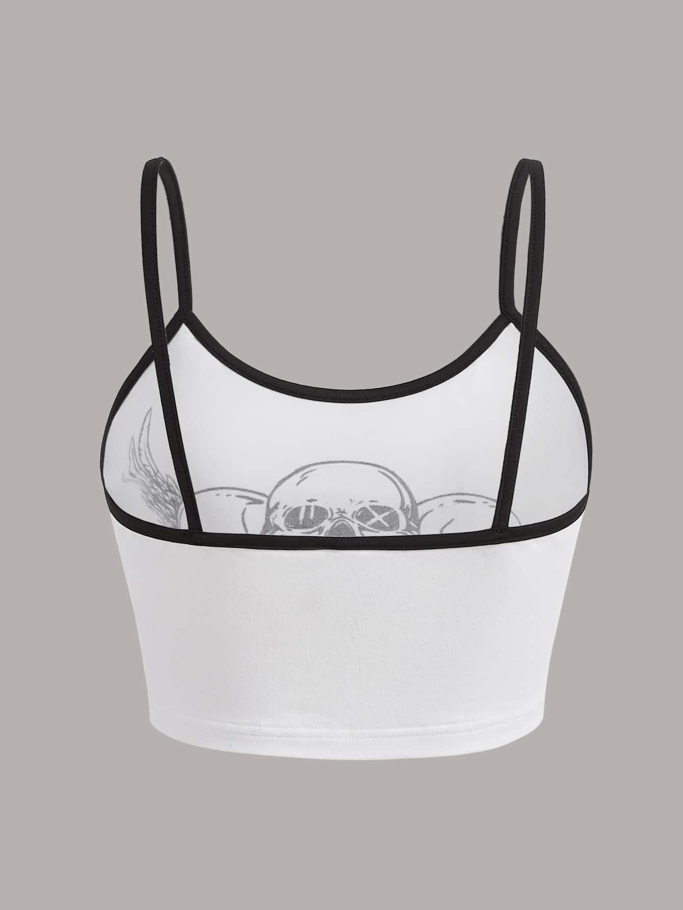 Top à fines brides à imprimé tête de mort à liseré contrastant