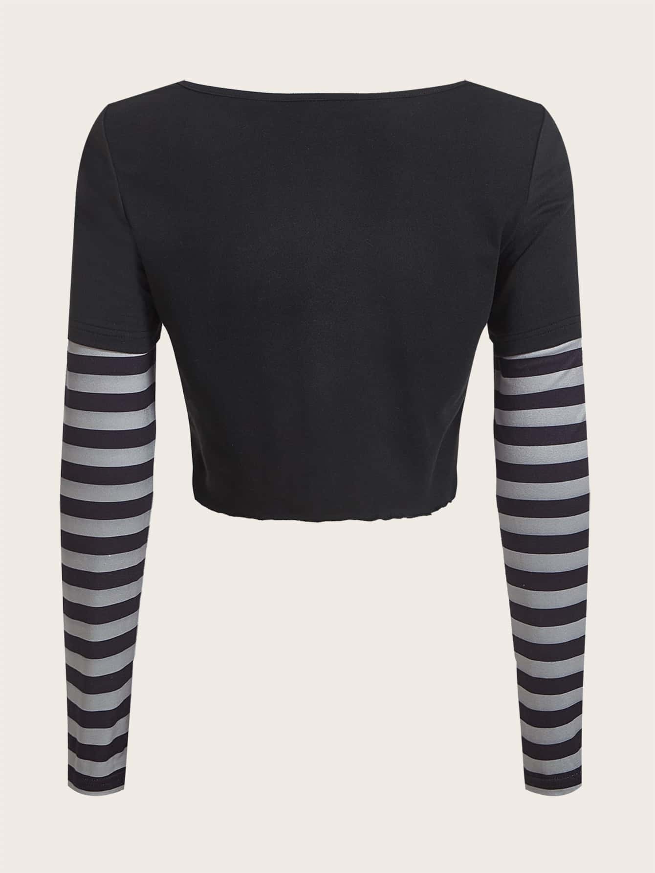 T-shirt court à imprimé tête de mort à rayures