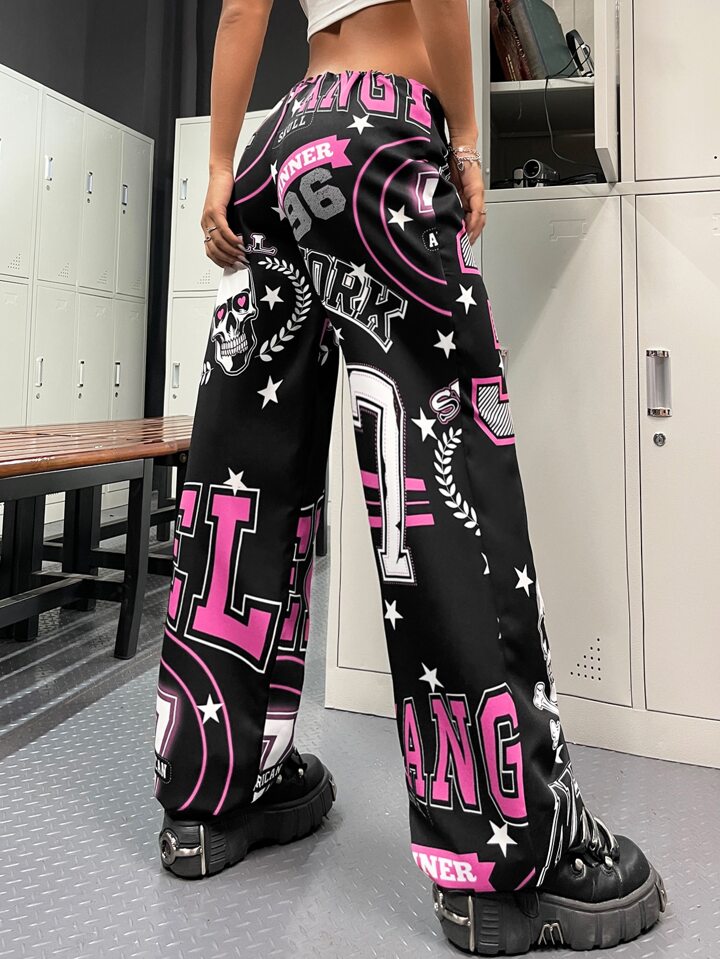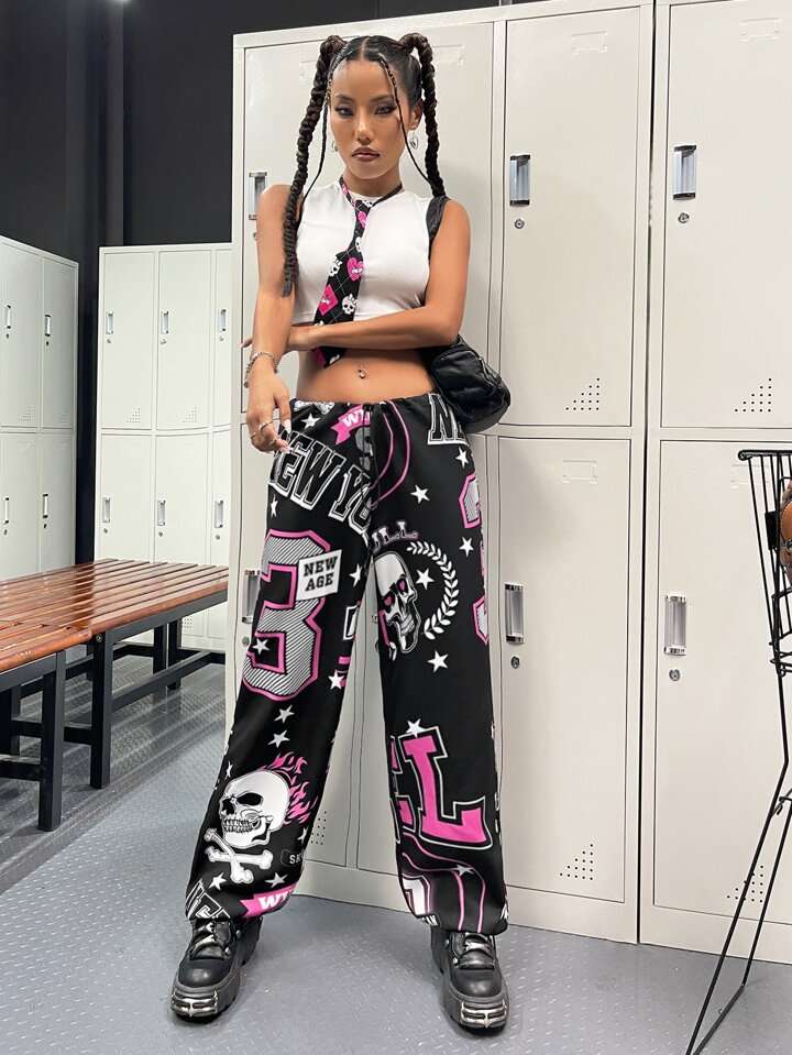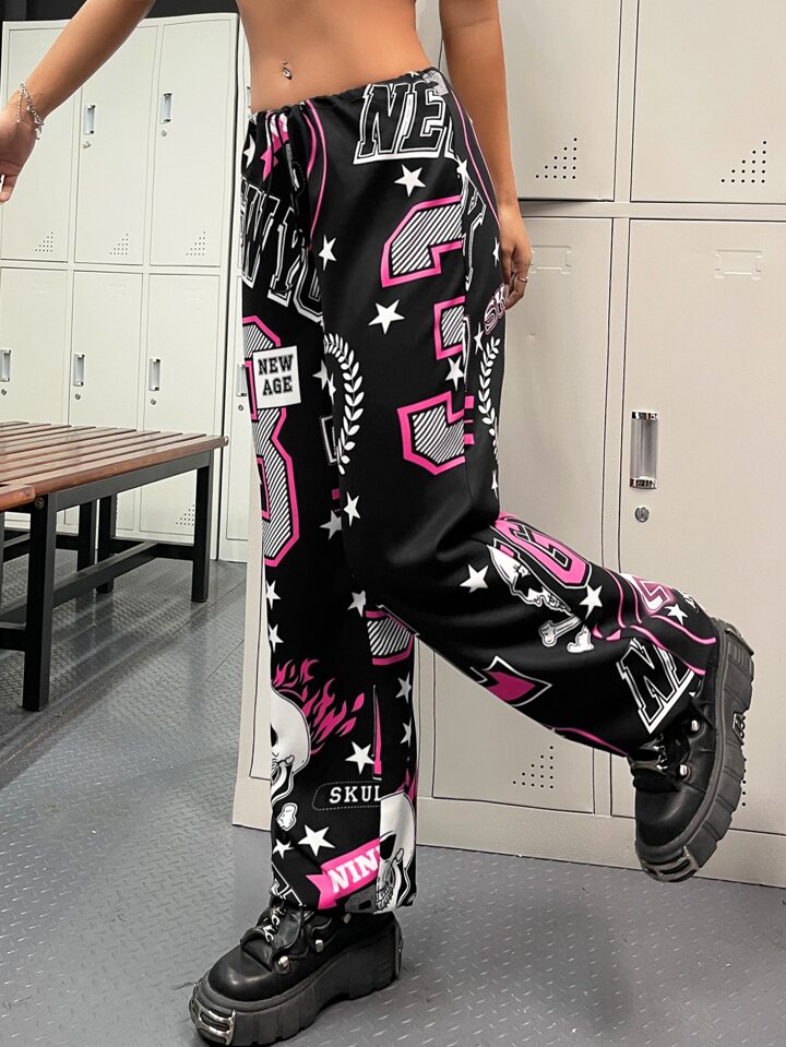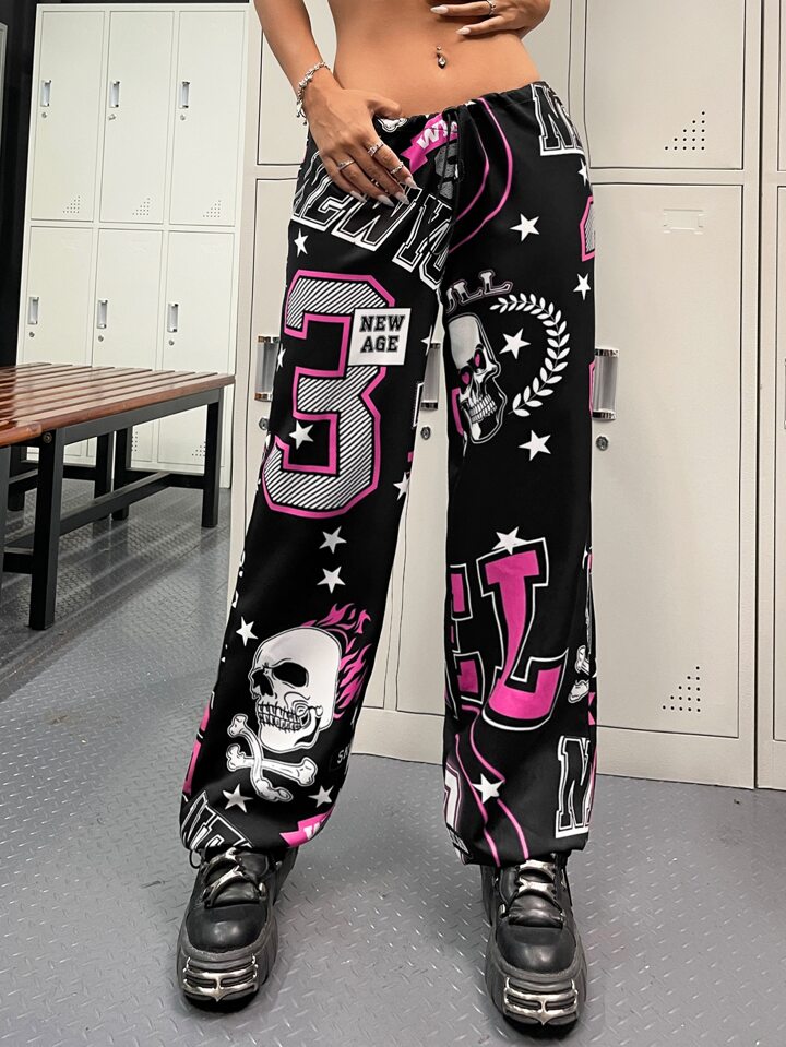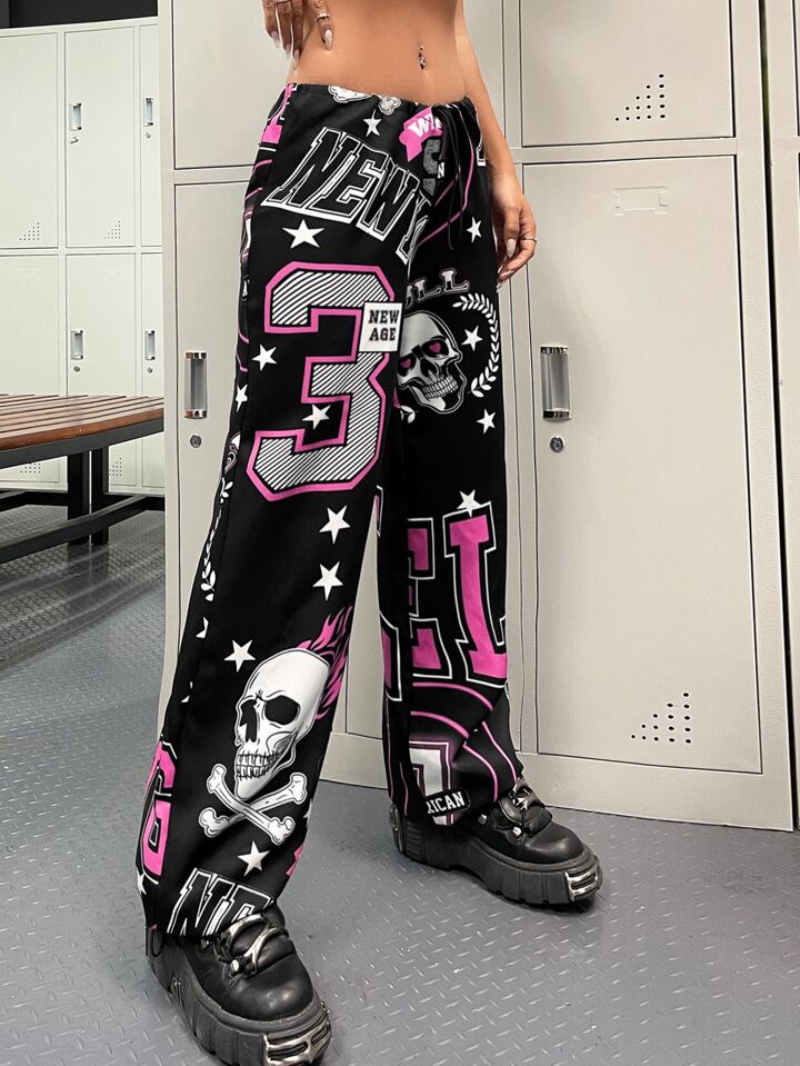 Pantalon droit à imprimé tête de mort à cordon
