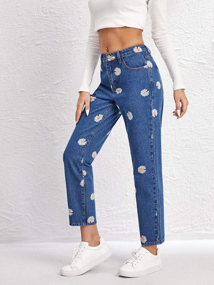 Jean droit avec imprimé marguerite