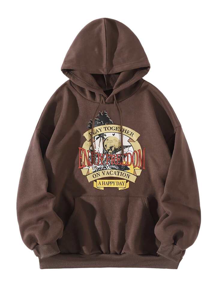 Sweat-shirt à capuche thermique à imprimé slogan à poche kangourou