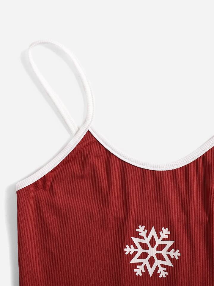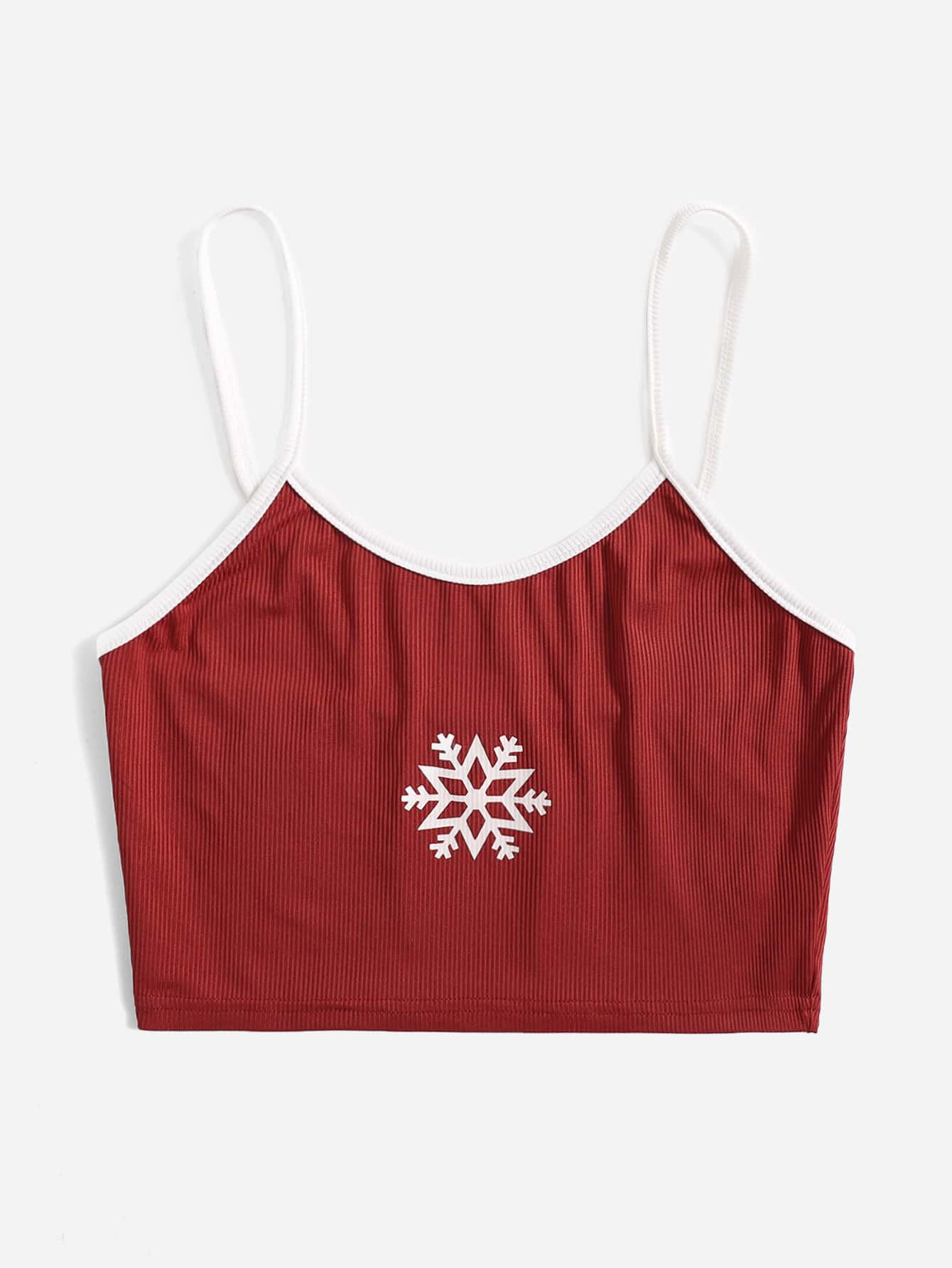 Top à fines brides court flocon de neige graphique côtelé