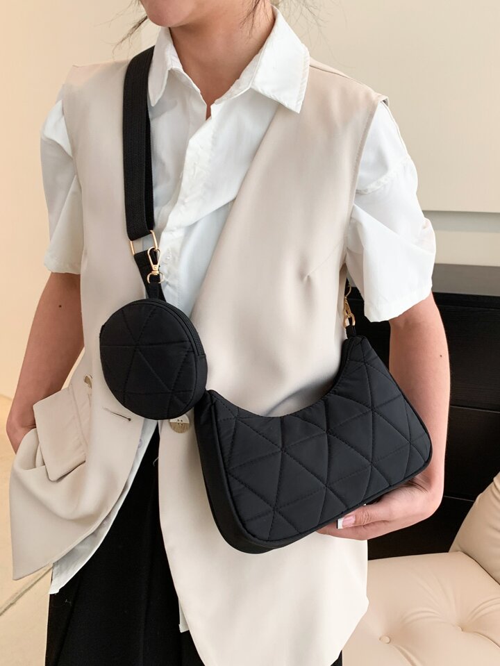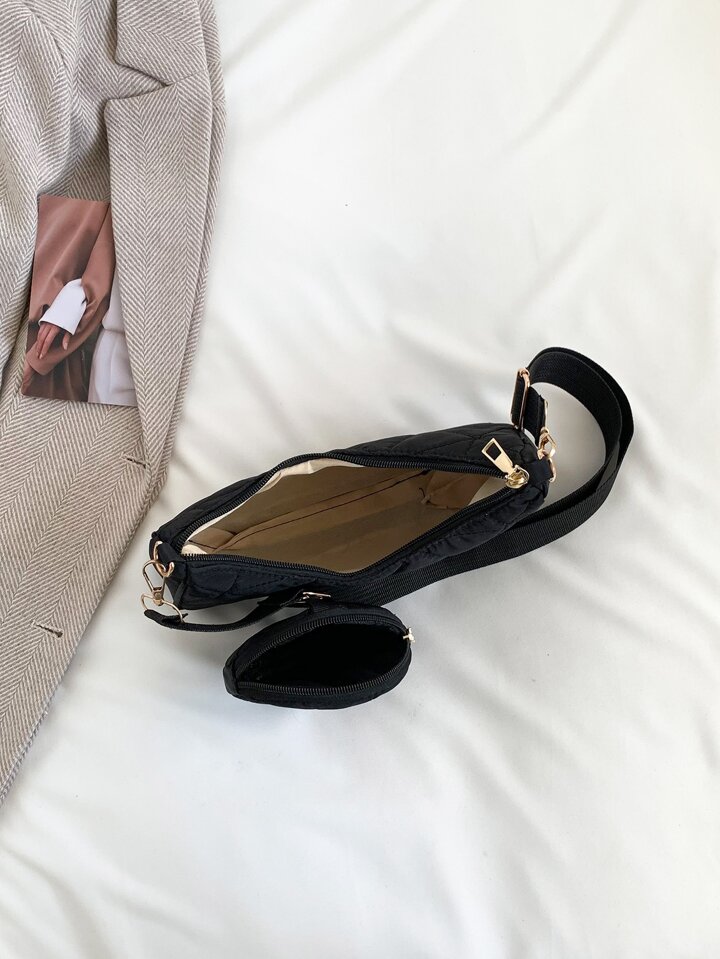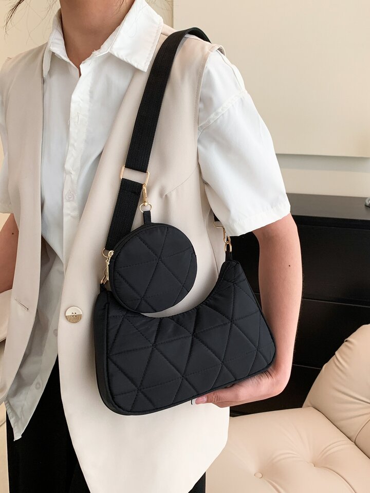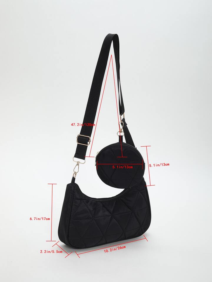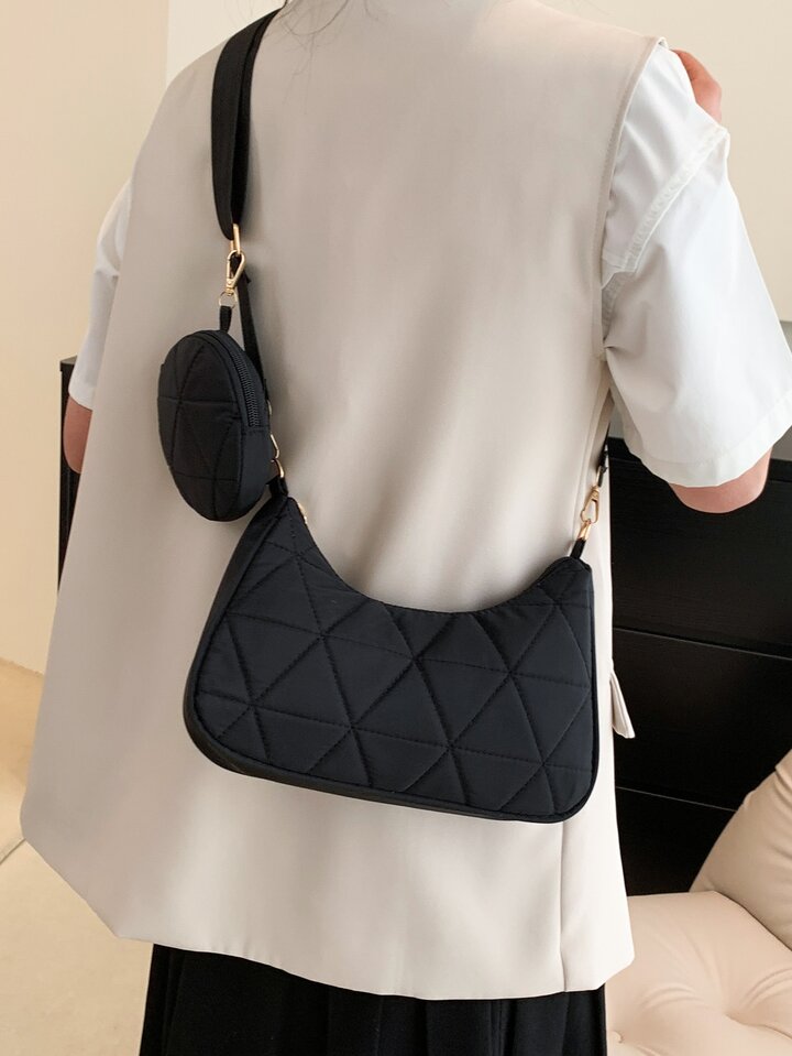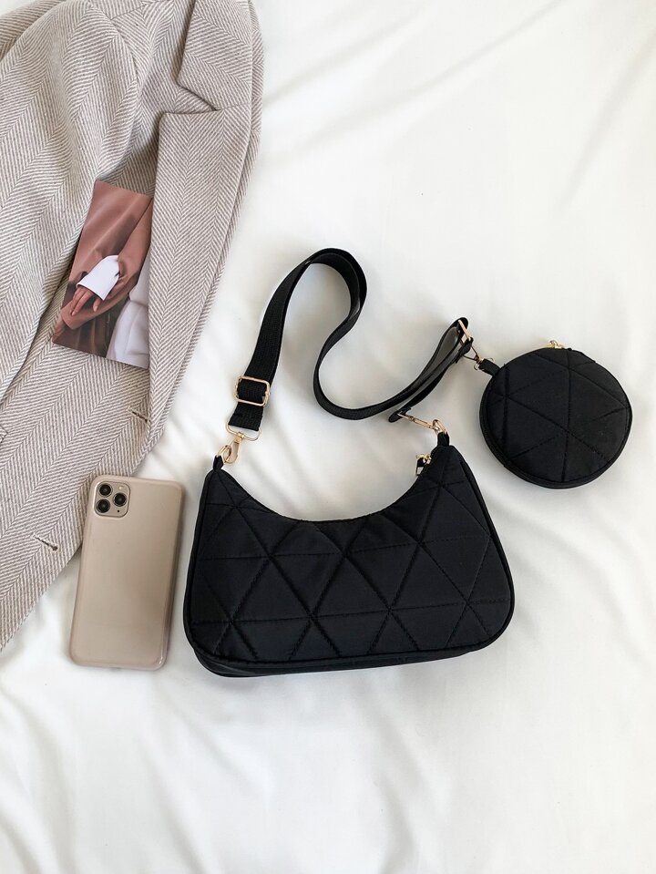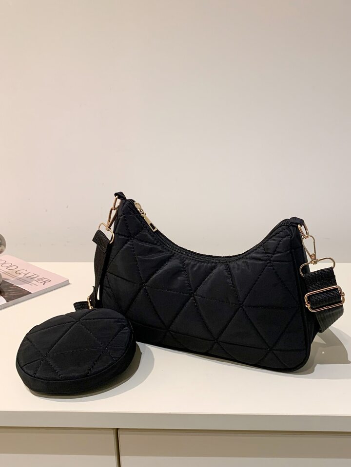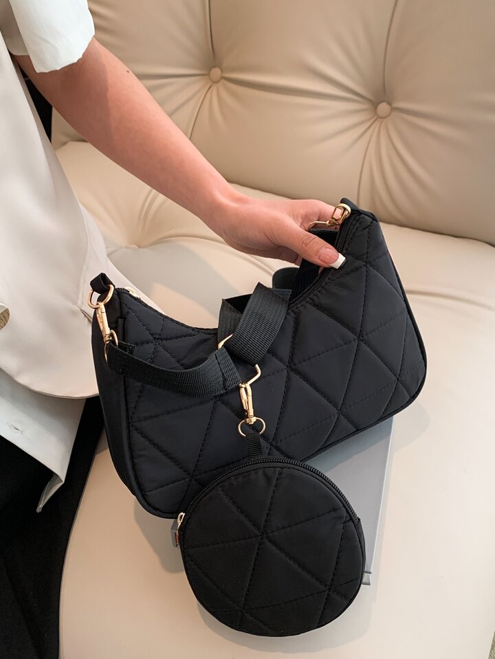 Sac hobo unicolore noir matelassé avec porte-monnaie