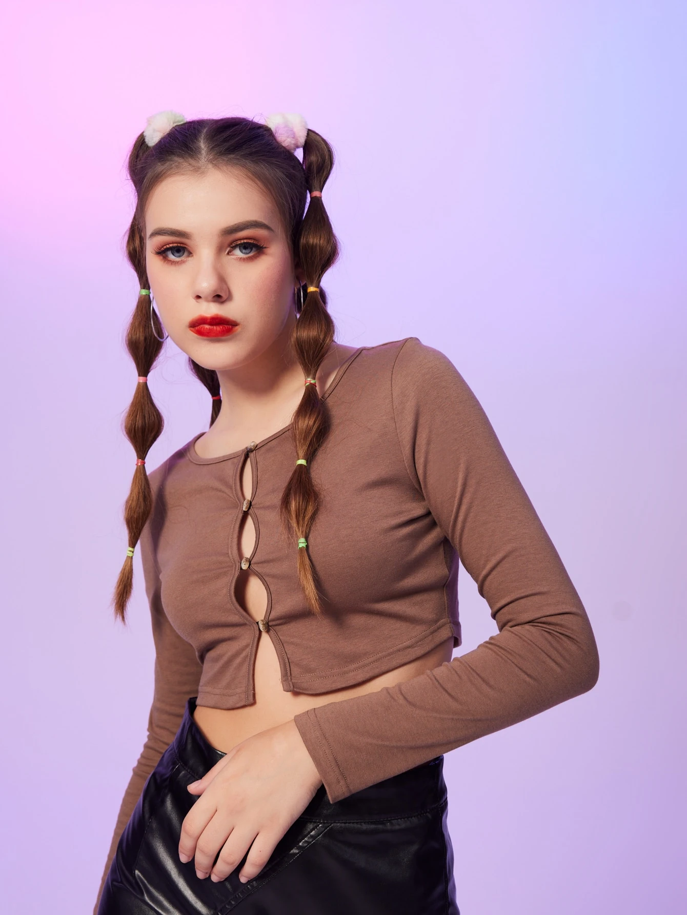 T-shirt court unicolore à bouton