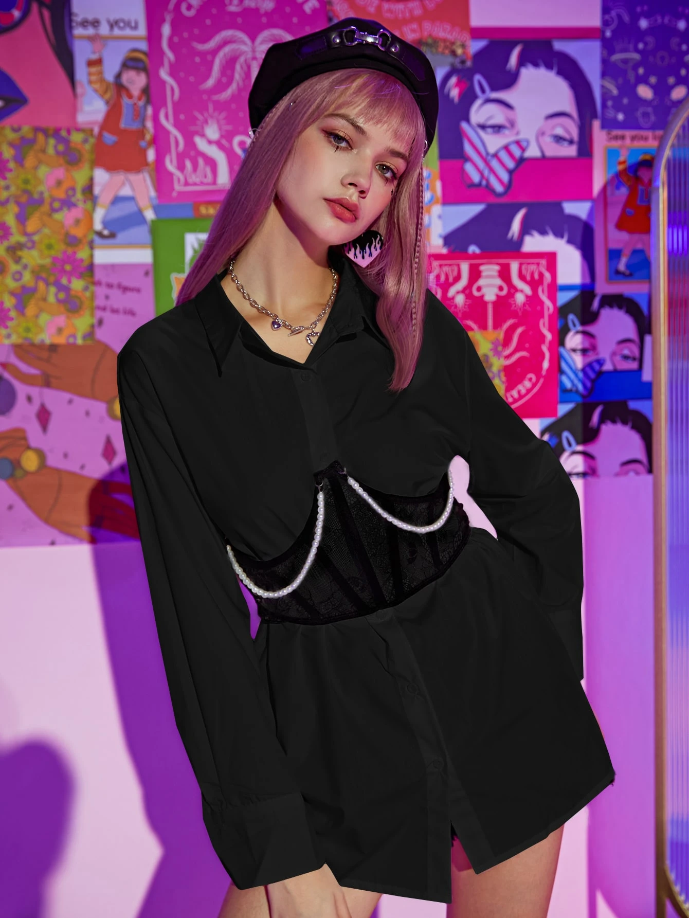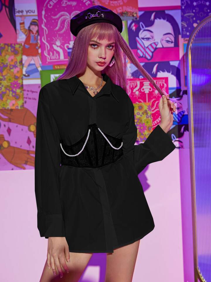 Chemise unicolore à bouton sans corset