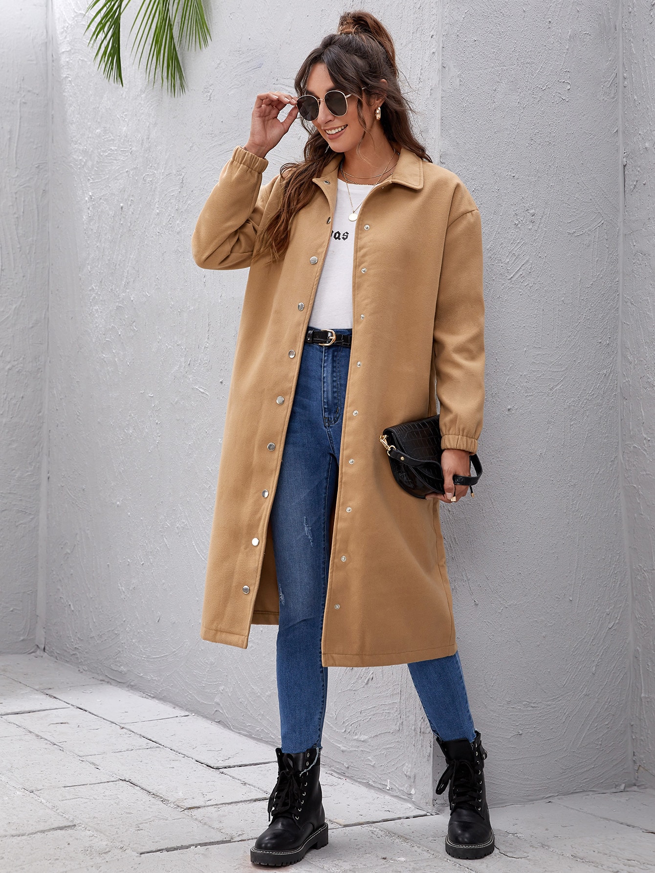 Manteau unicolore avec boutons