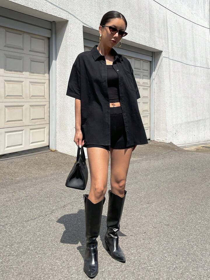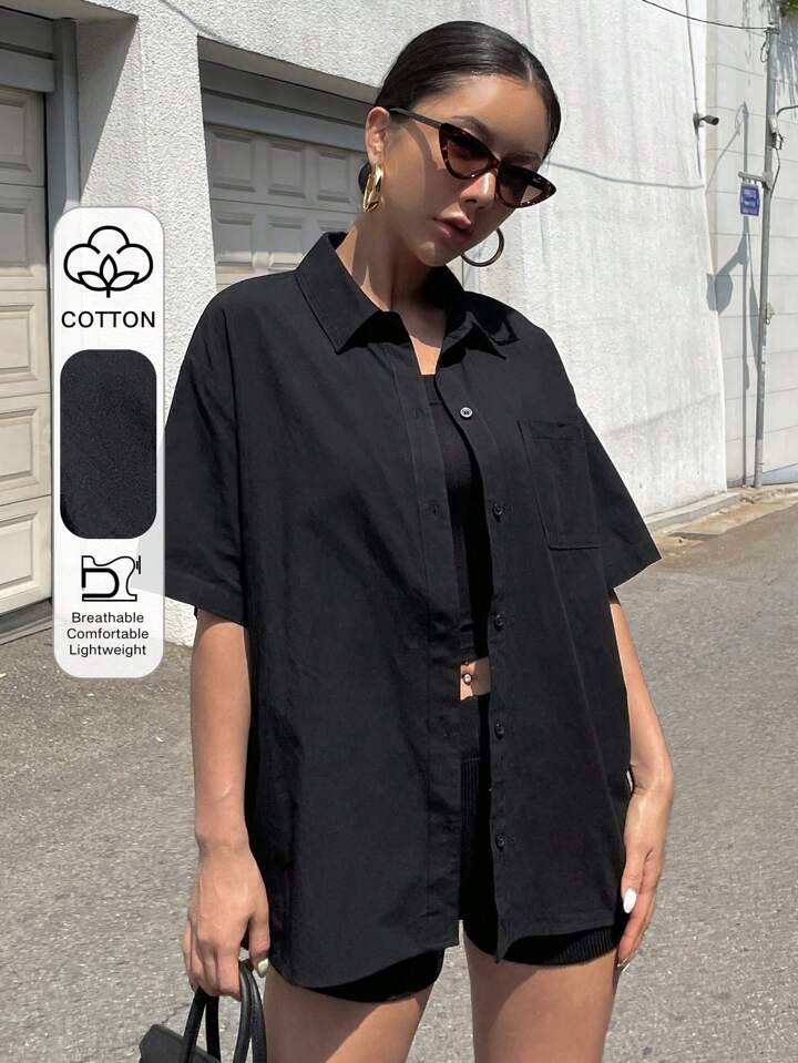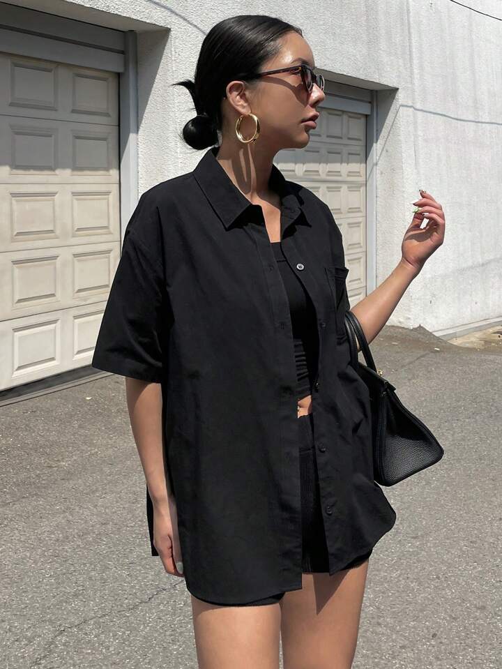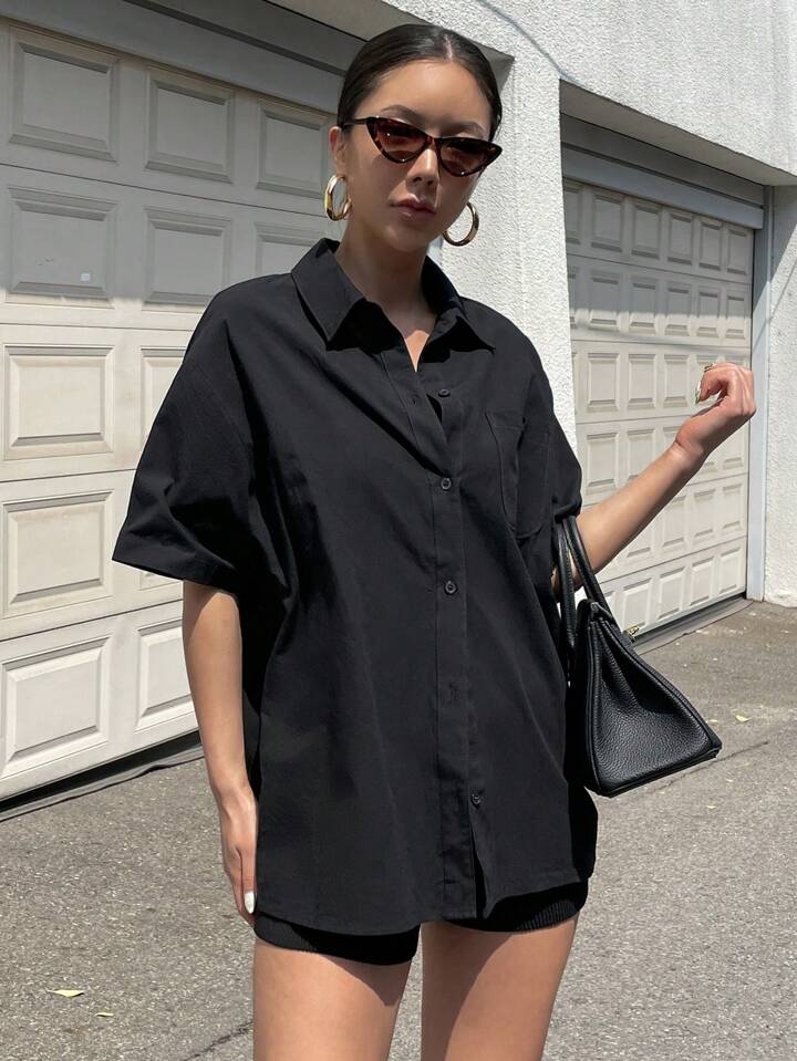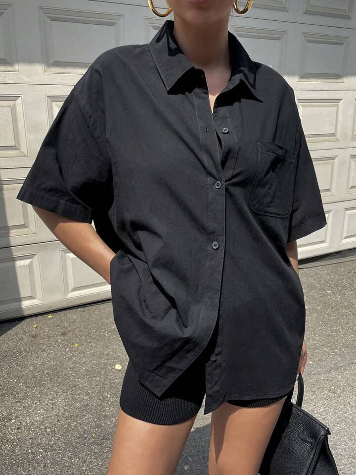 Chemise unicolore À Épaules Tombantes Et Boutonnées