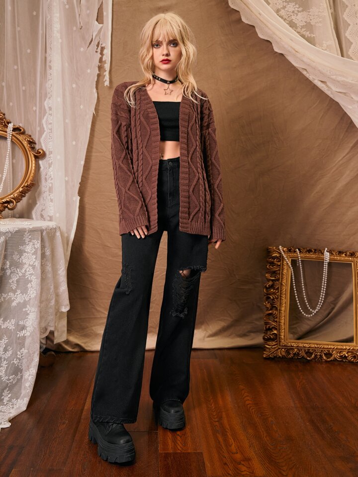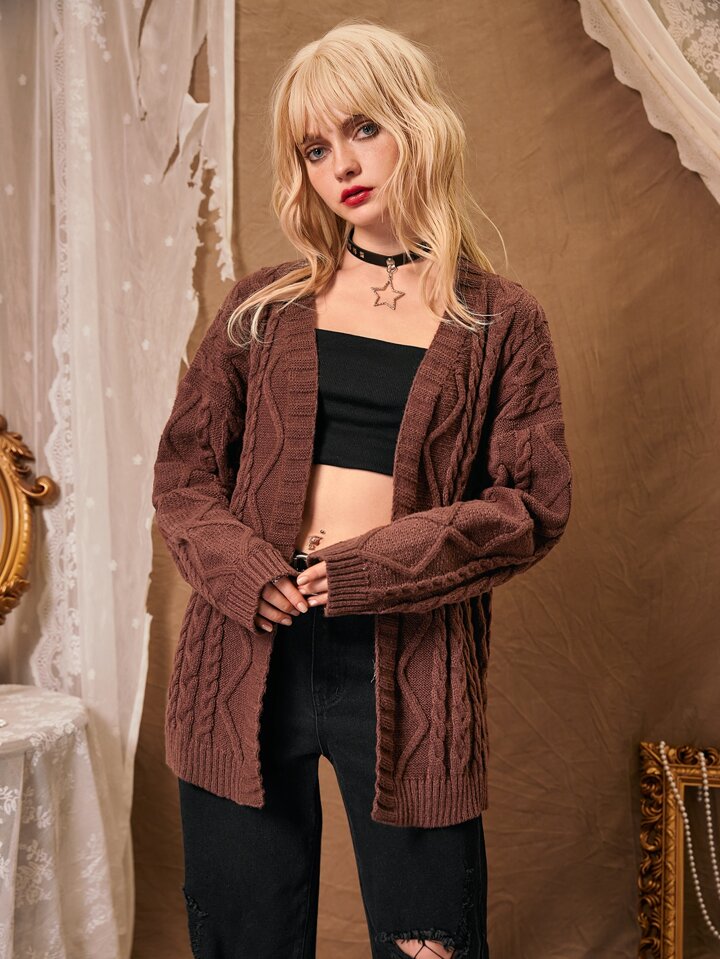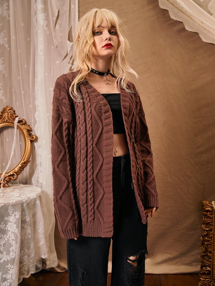 Cardigan unicolore en tricot torsadé