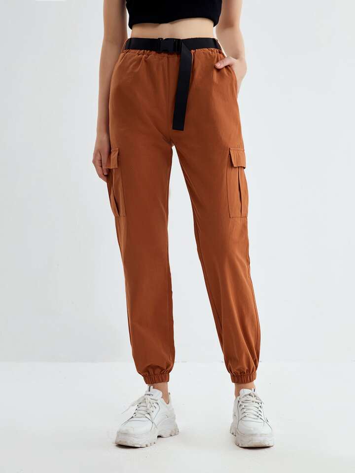 Pantalon de jogging unicolore avec ceinture à boucle