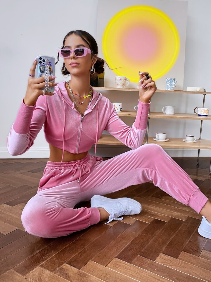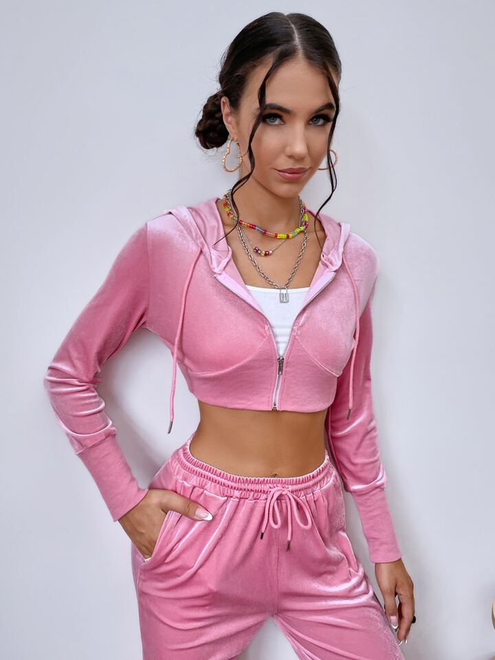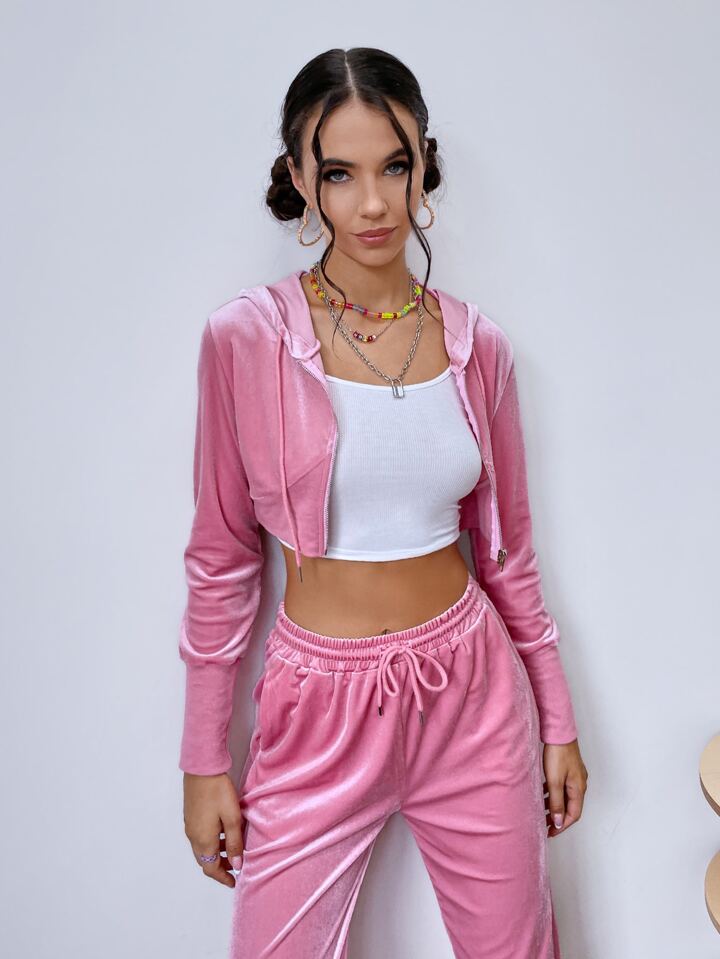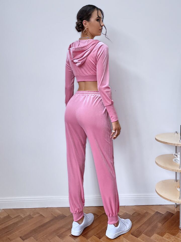 Pantalon de survêtement & sweat-shirt à capuche unicolore court en velours à cordon