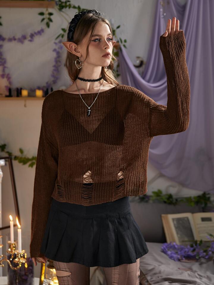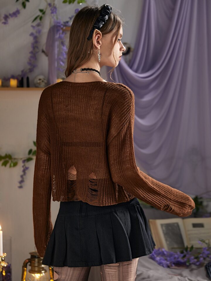 Pull court unicolore déchiré