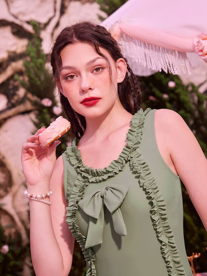 Maillot de bain une pièce unicolore à fronces à nœud papillon