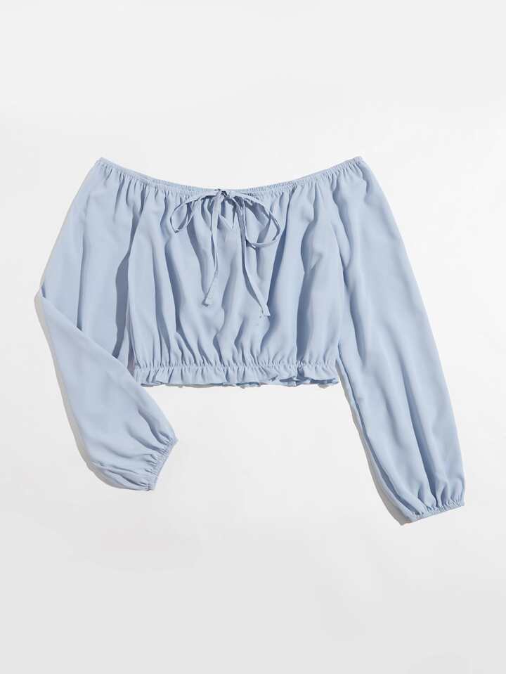 Blouse courte unicolore avec plis