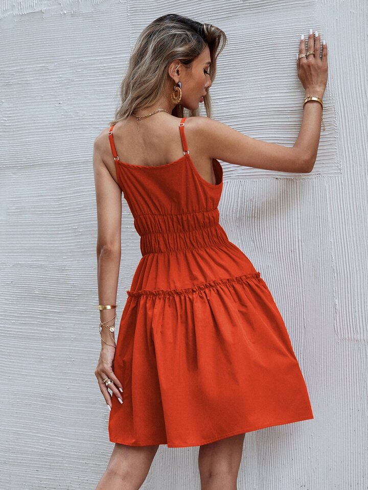 Robe à fines brides unicolore avec plis