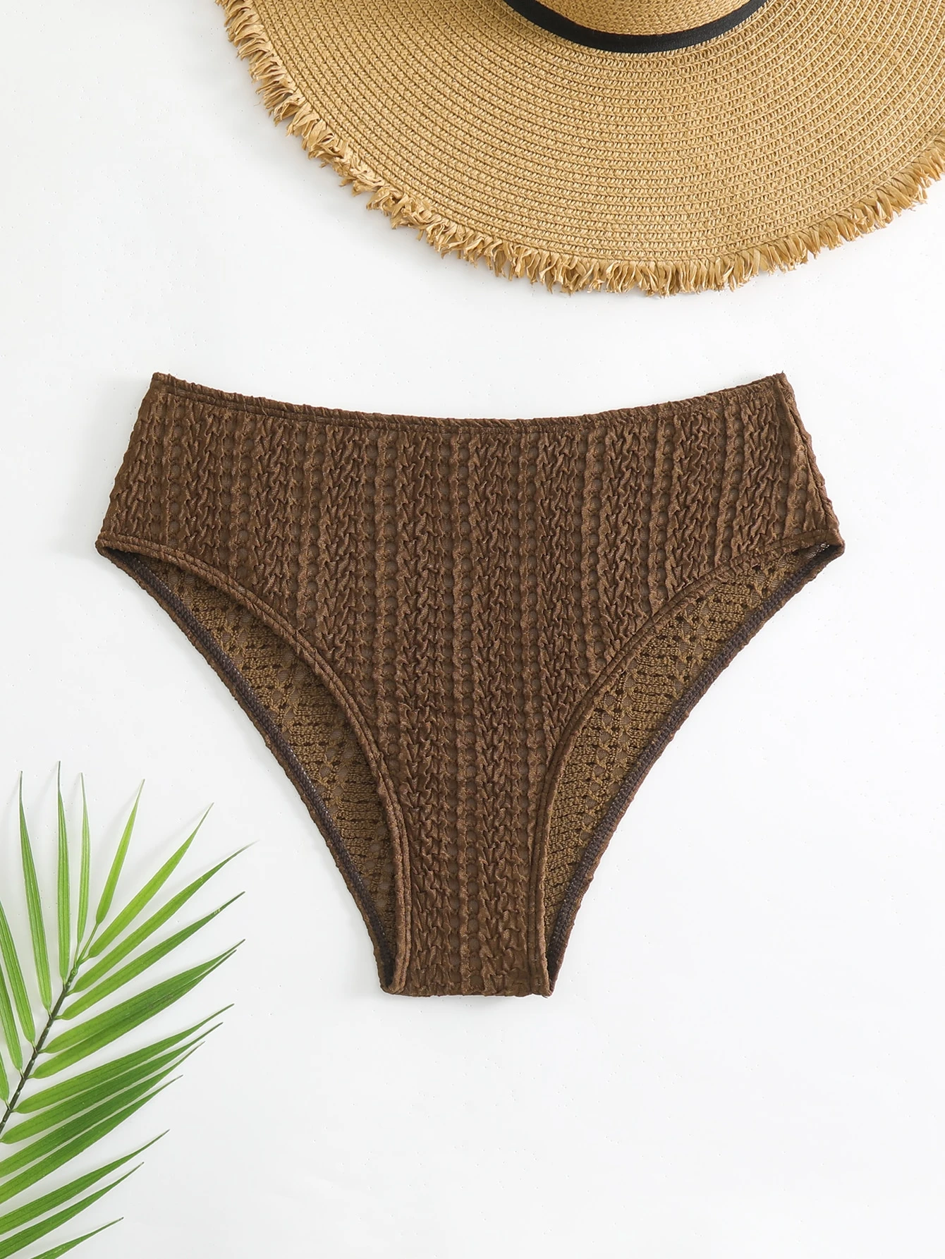 Bas de bikini unicolore taille haute