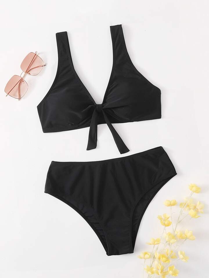 Ensemble de bikini à nœud unicolore pour les vacances d'été à la plage