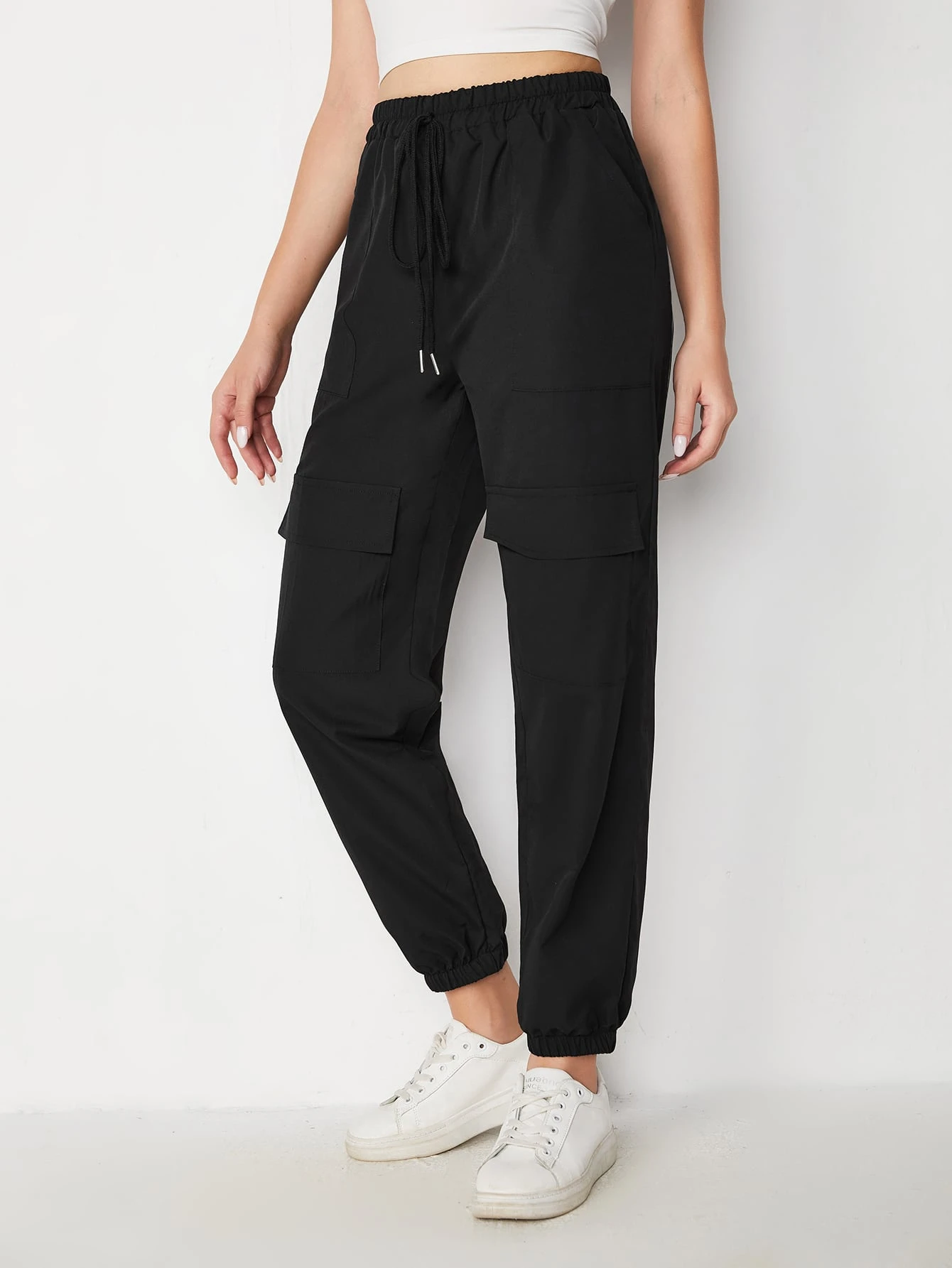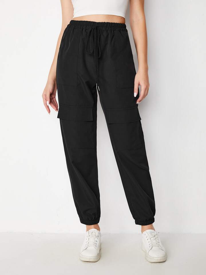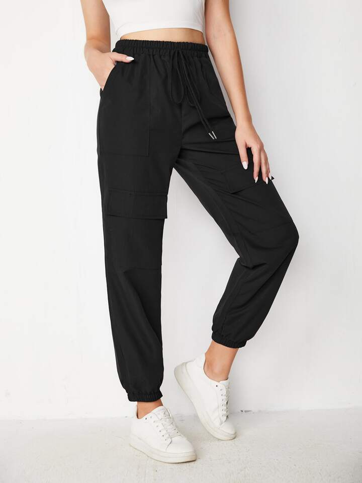 Jogging cargo unicolore à nœud