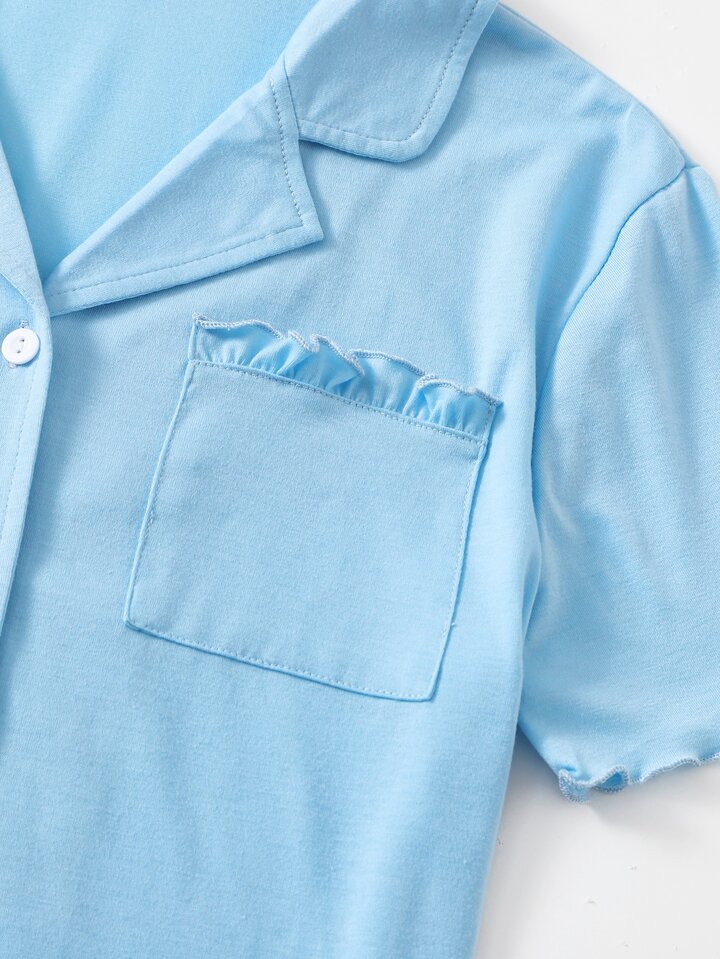 Ensemble de pyjama unicolore à ourlet ondulé avec boutons