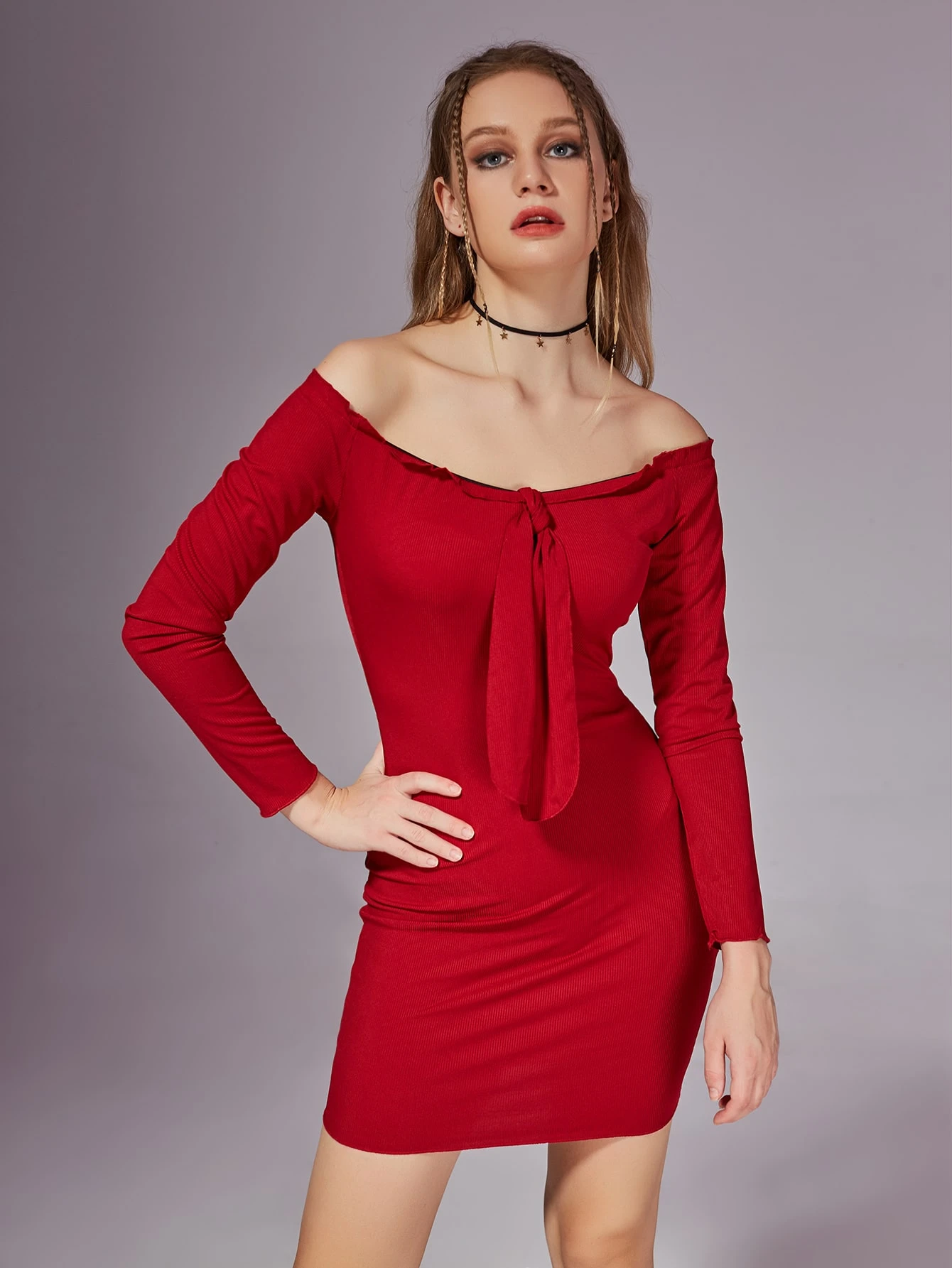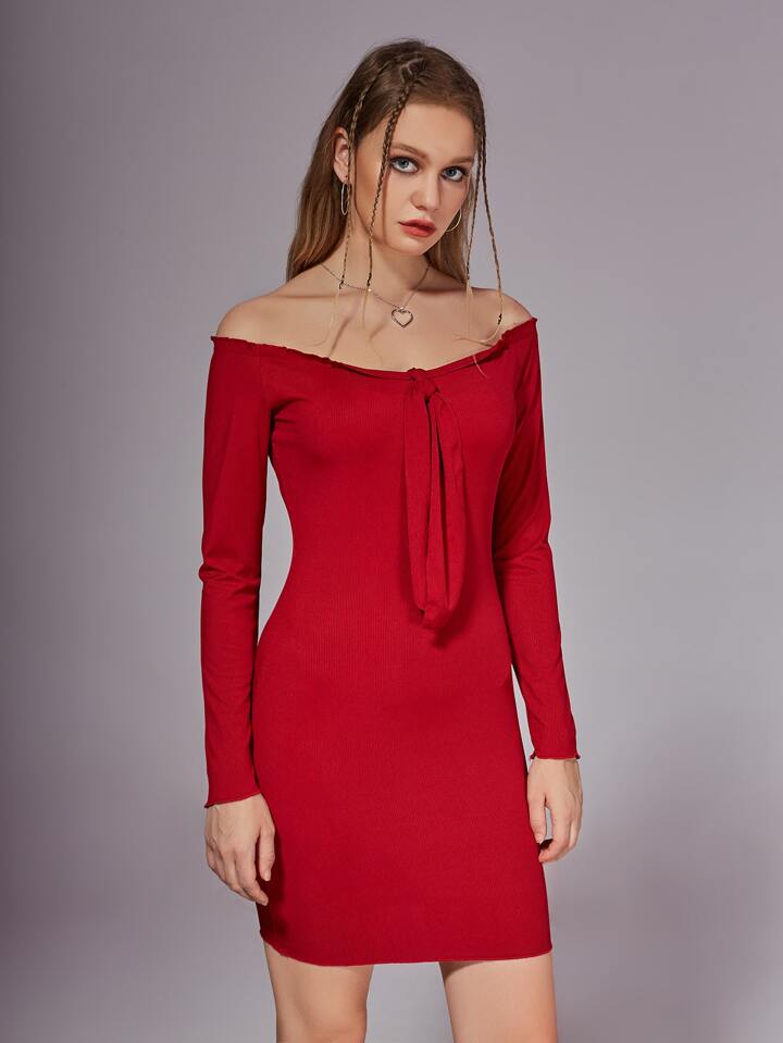 Robe unicolore à épaules dénudées à nœud