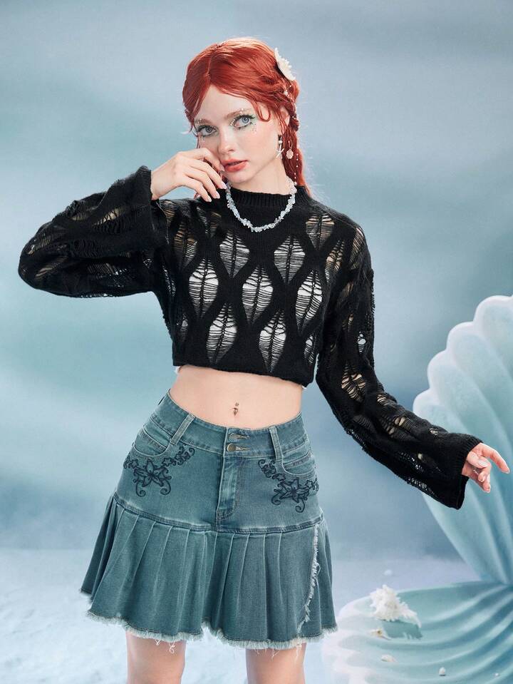 Pull Court Unicolore En Maille